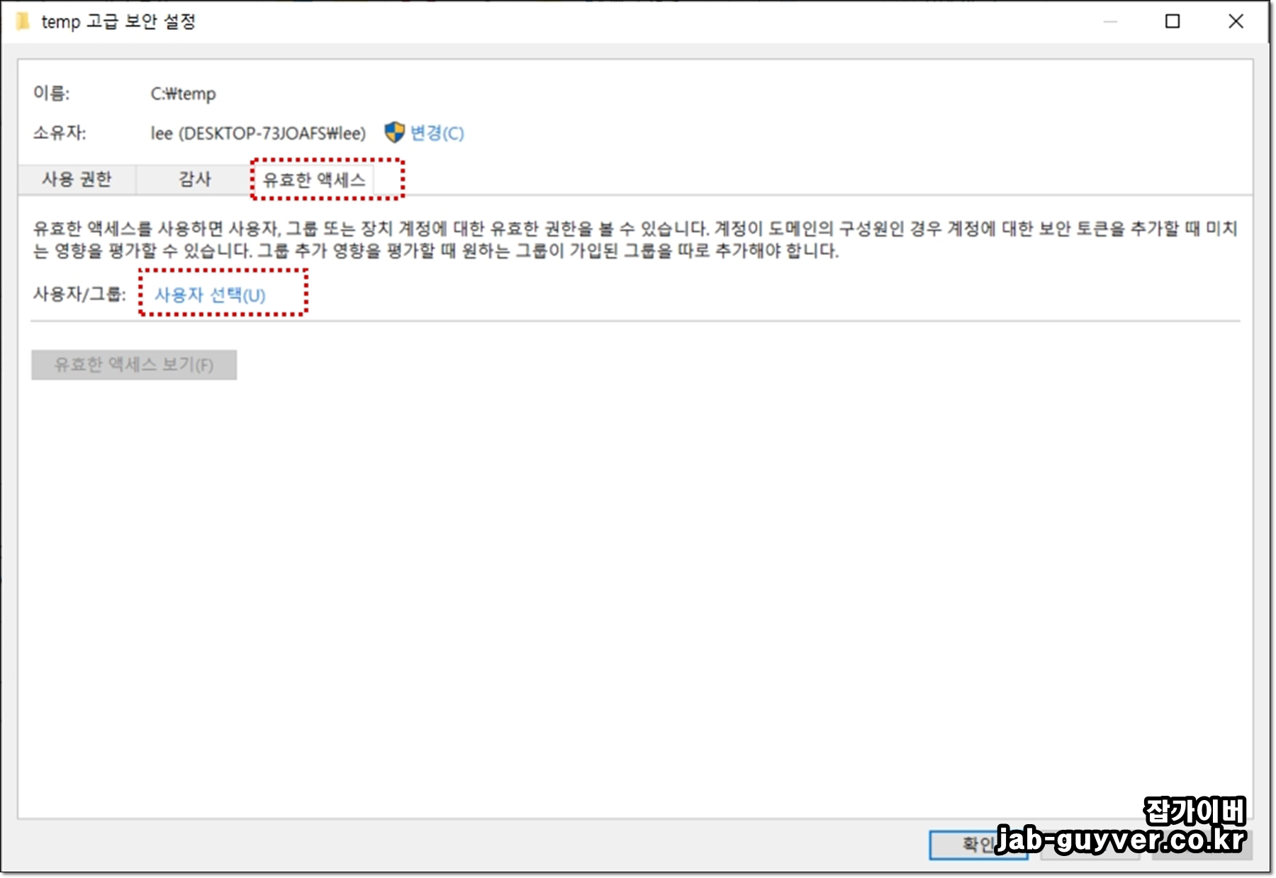 이후 윈도우 사용자계정에 대한 "사용자 권한" 항목에서 위와 같은 방법으로 권한을 설정해주면 됩니다.