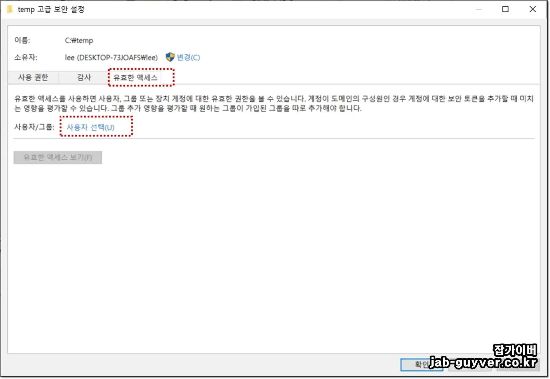 네. 문구/배치가 조금 다를 뿐, 속성 → 보안 → 고급에서 권한을 확인하고 필요한 계정/그룹을 추가하는 구조는 같습니다. 메시지 문구도 “액세스가 거부되었습니다”처럼 표현만 조금 달라질 뿐 맥락은 동일합니다.