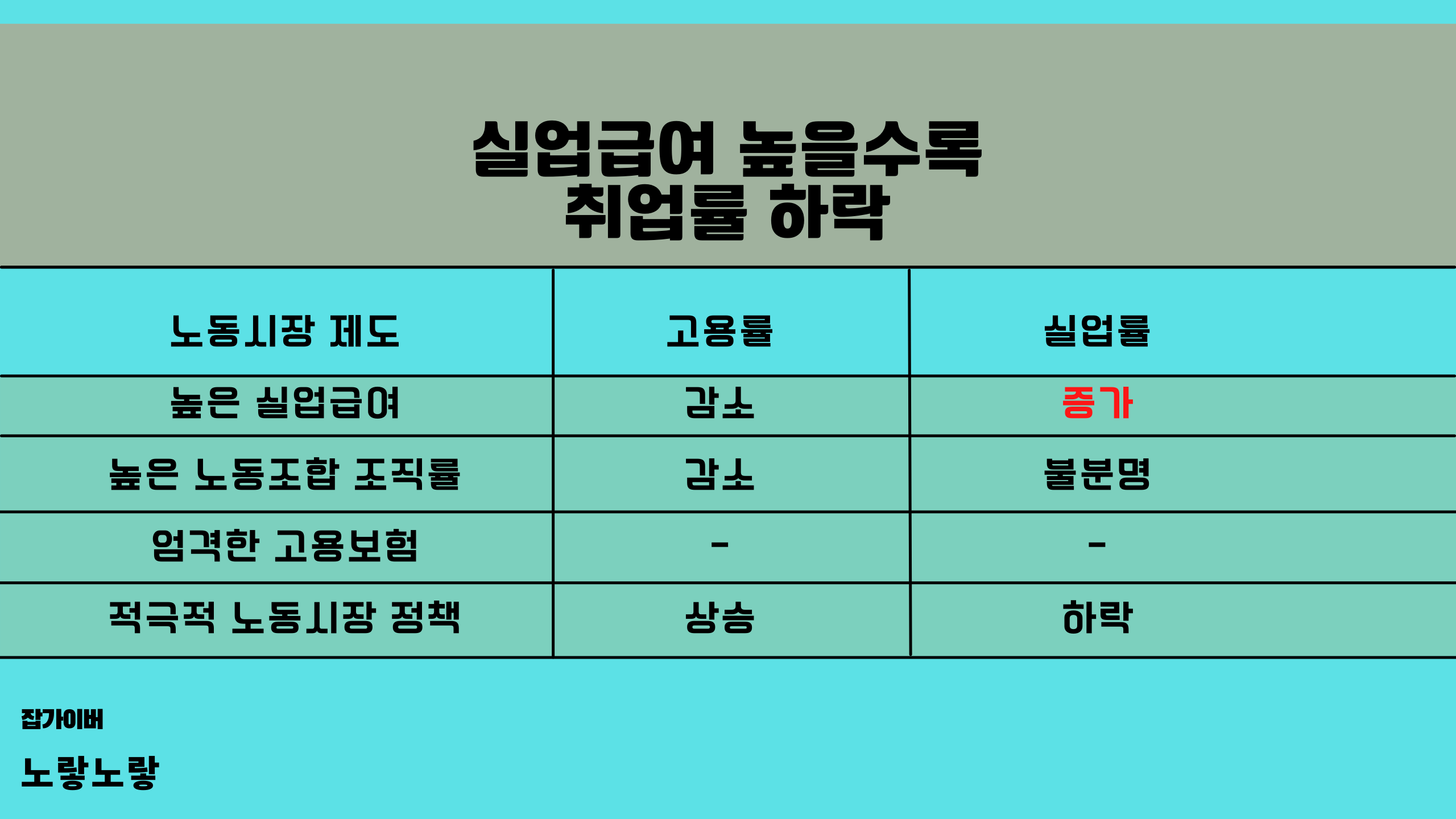 | 높은 실업급여 | 감소 | 증가 |