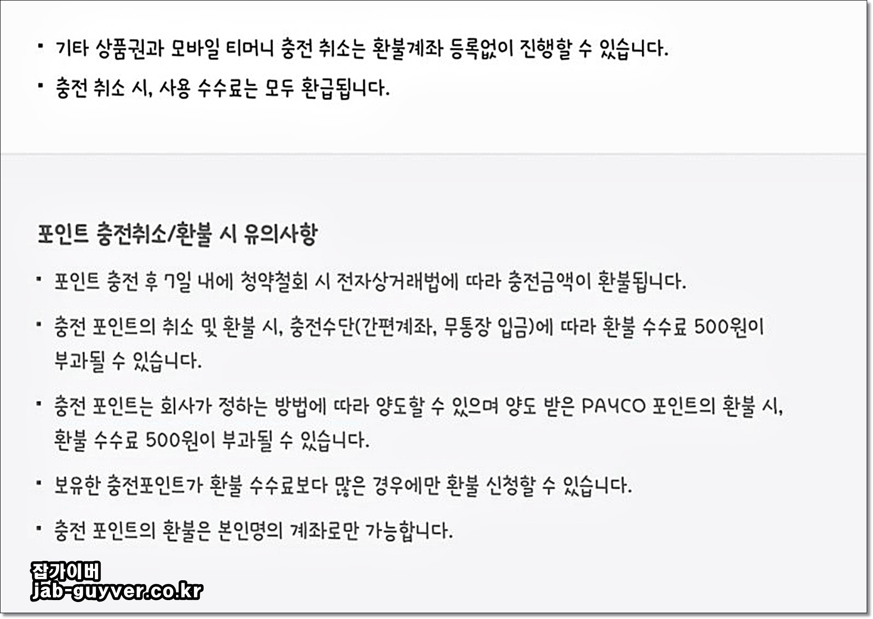 페이코 충전 취소 및 환불 시 유의사항
