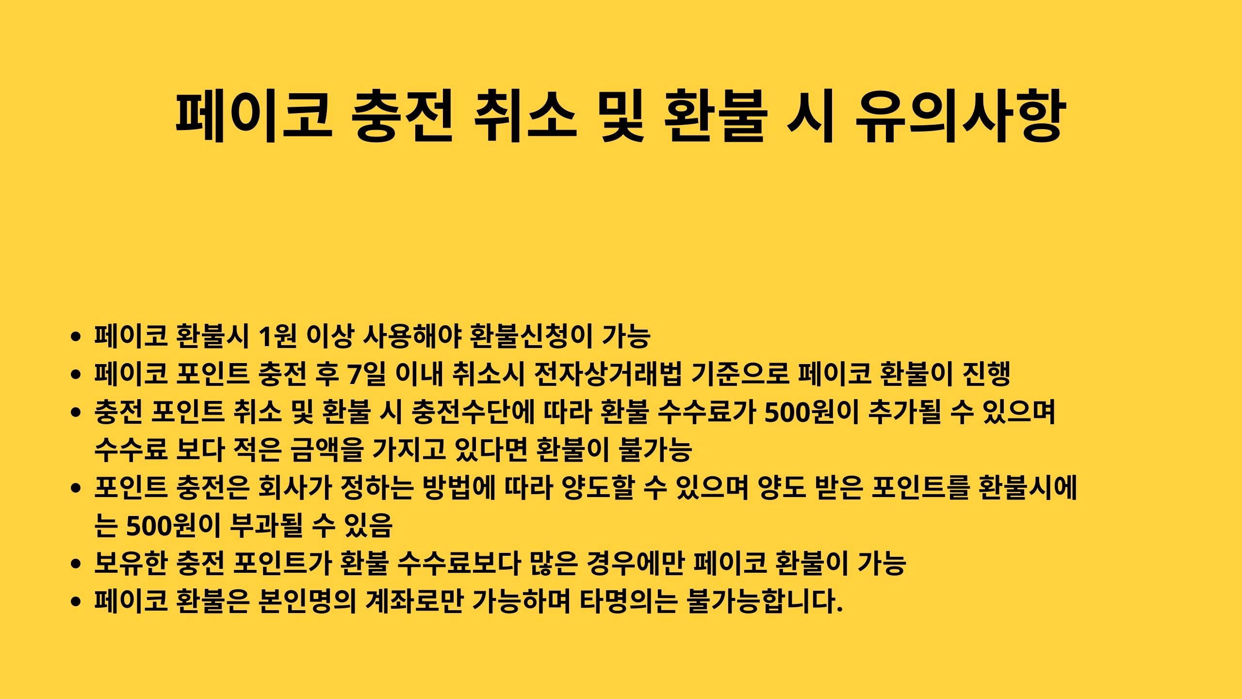 - 페이코 환불은 본인명의 계좌로만 가능하며 타명의는 불가능합니다.