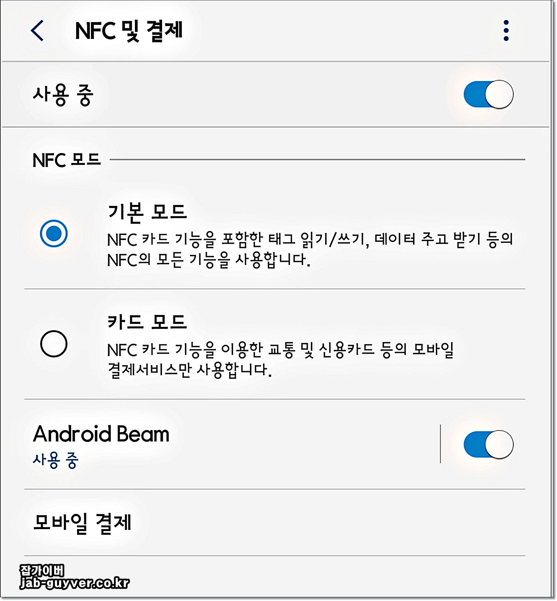 안드로이드 폰 기준 NFC기능은 2가지로 분류됩니다.