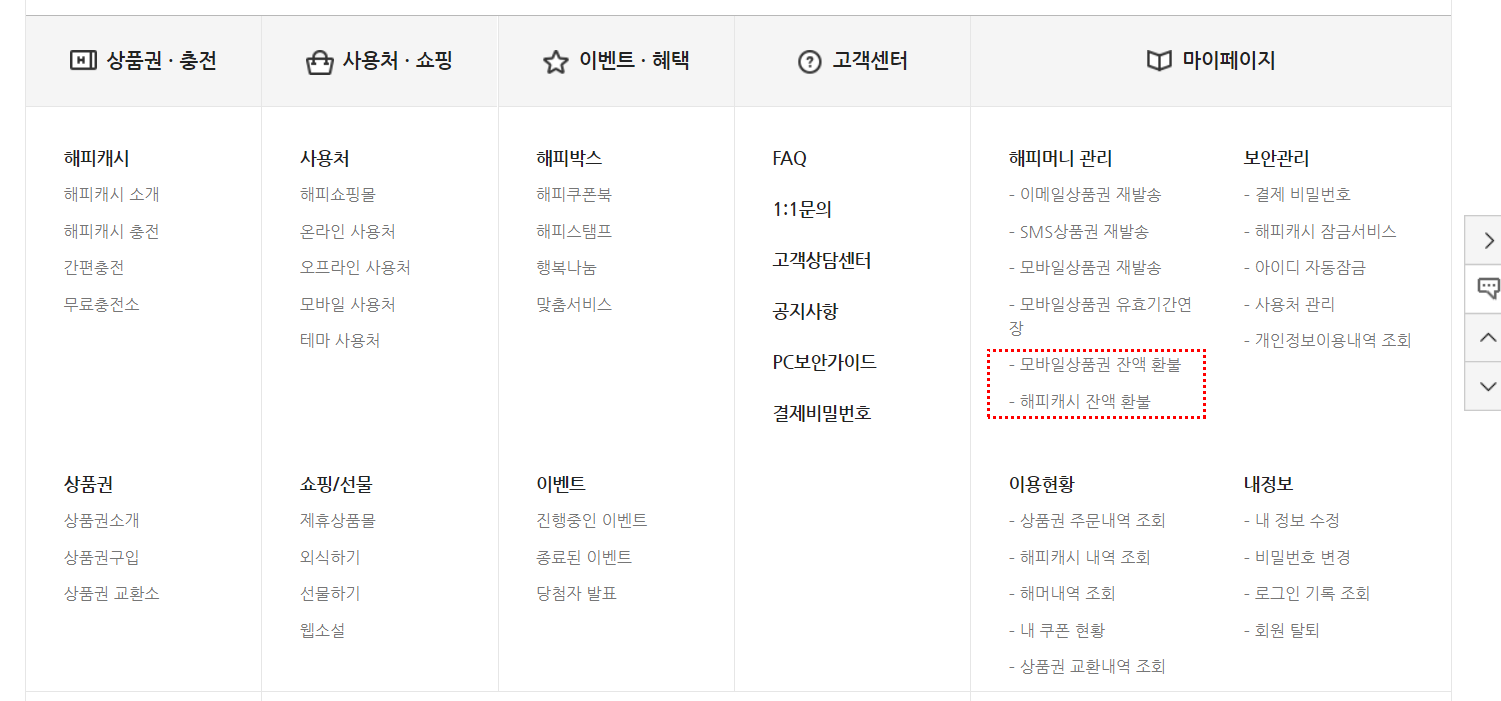 - 해피캐시 잔액 환불
