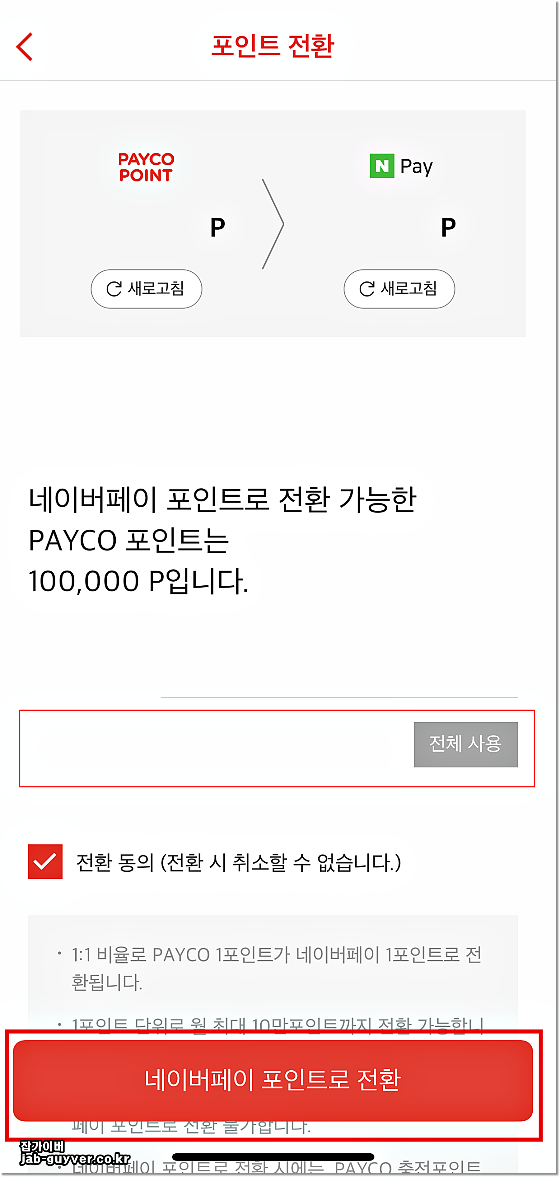 네이버페이 포인트를 선택해서 네이버페이로 전환을 합니다.