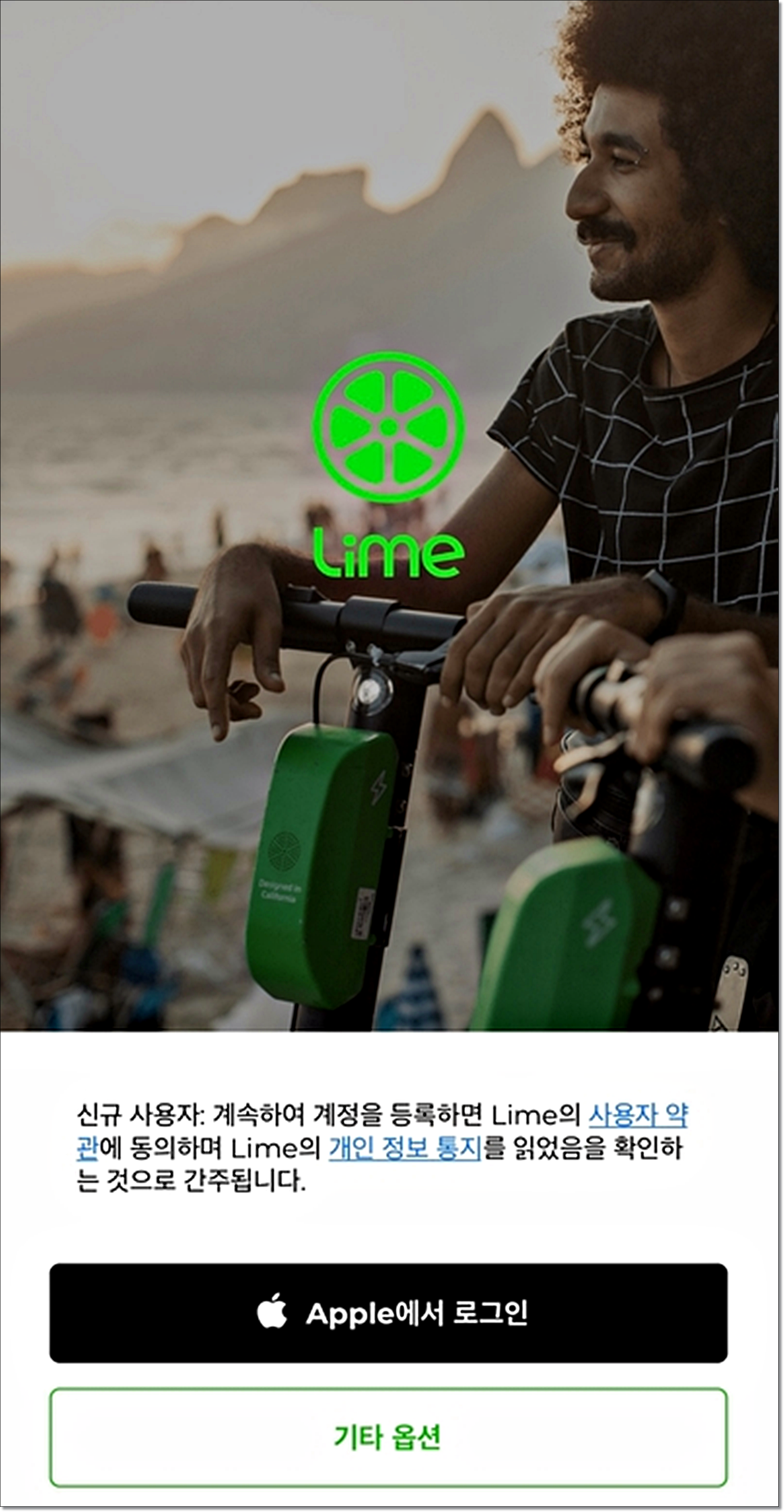 라임 전동 킥보드를 사용하기 위해서는 안드로이드 및 아이폰 모두 앱스토어를 통해 Lime 앱을 설치합니다.