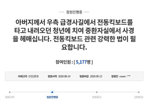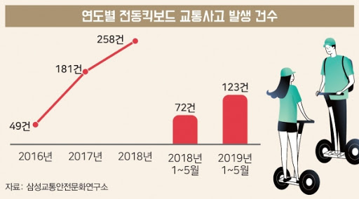 이로인해 현재 전동킥보드로 인한 사고가 급증하고 있으며 이에 대한 청와대 국민청원으로 전동킥보드 탑승에 대해서도 반발이 커져만 가운데 현재 전동킥보드를 타기 위한 법률인 16세 이상의 운전면허증 소지에서 2020년 12월부터 전동킥보드 운전면허 없이도 탑승할 수 있는 법안이 통과되어 더 큰 문제가 나올거 같습니다.