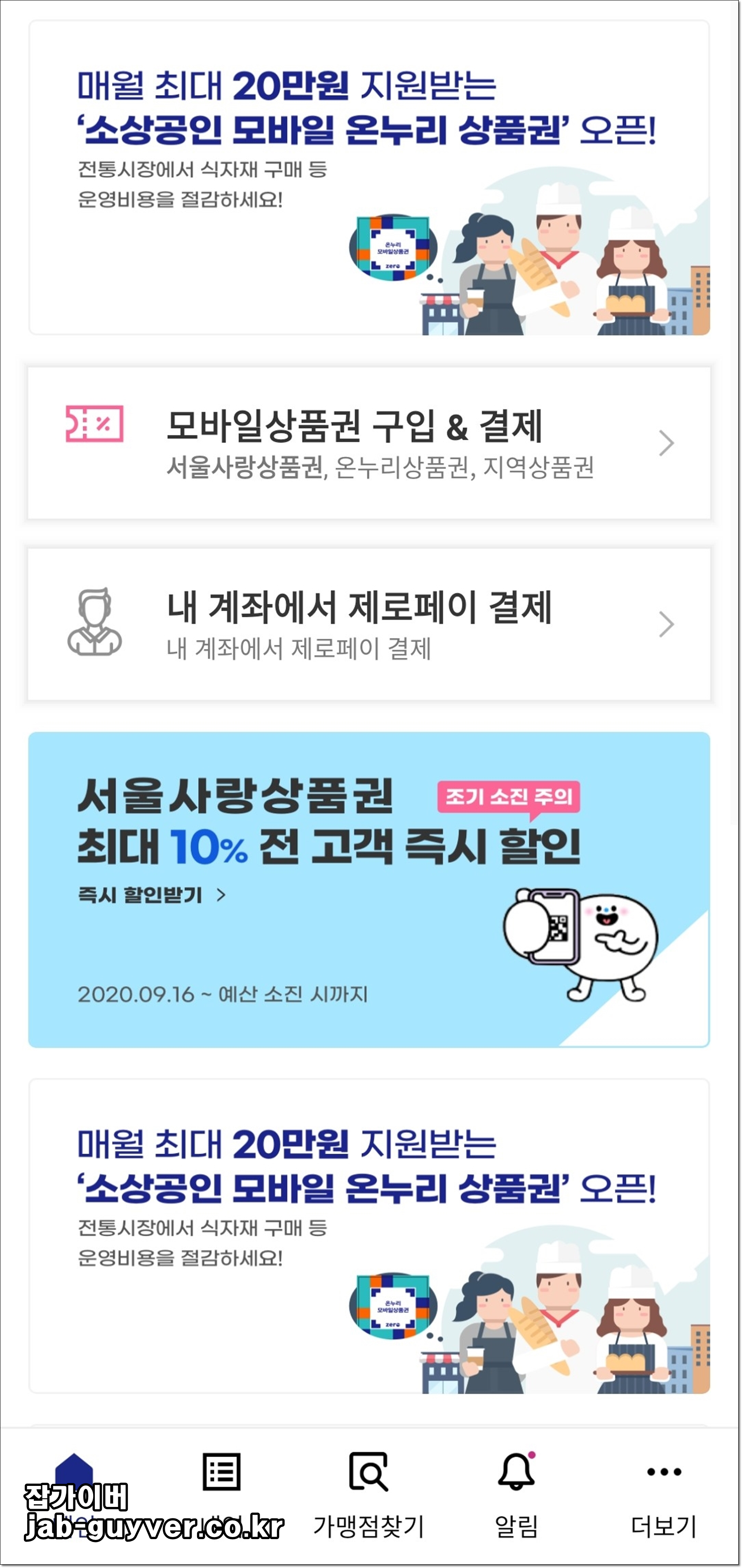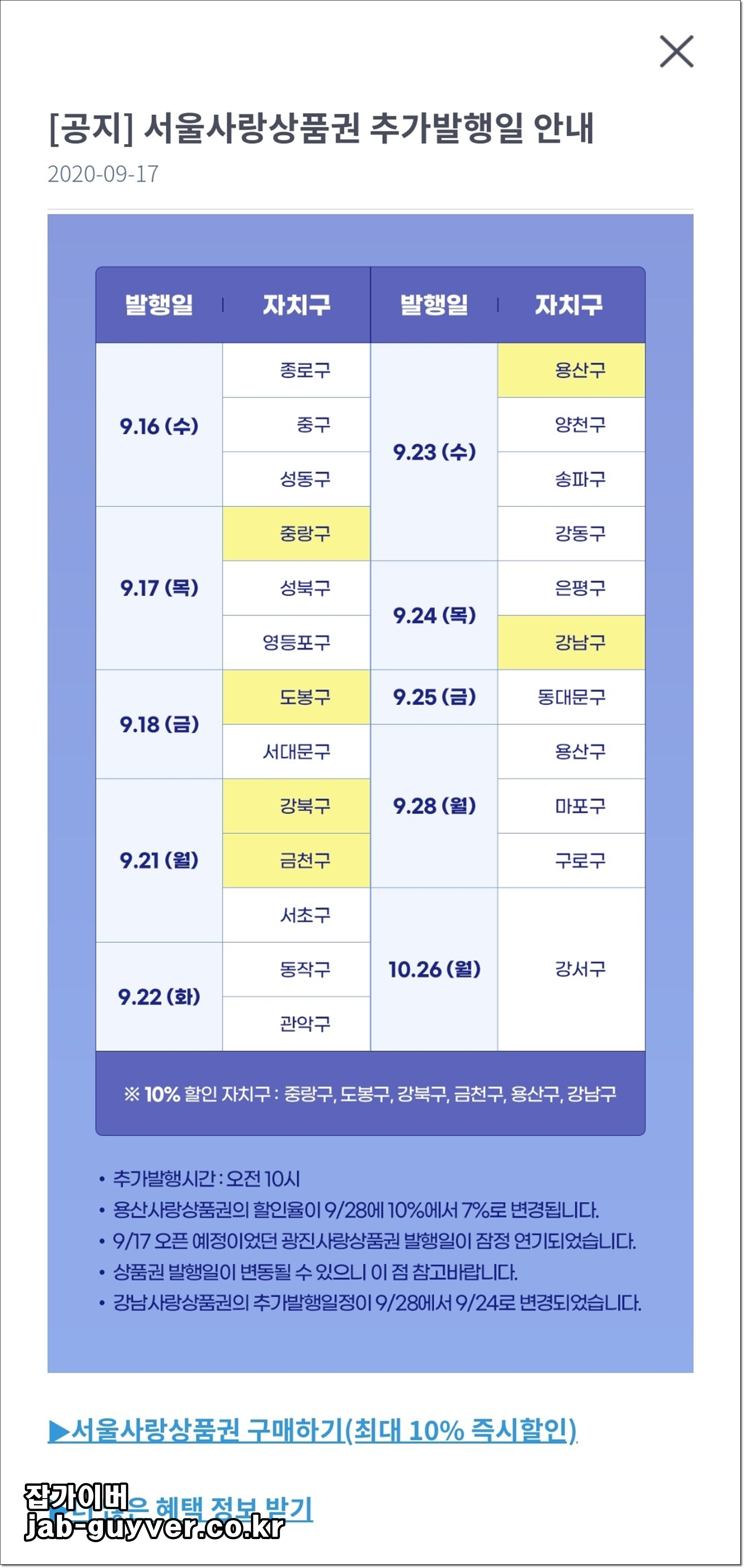 그 외에도 각 서울시 구에서 지원하는 상품권들도 구입할 수 있습니다.
