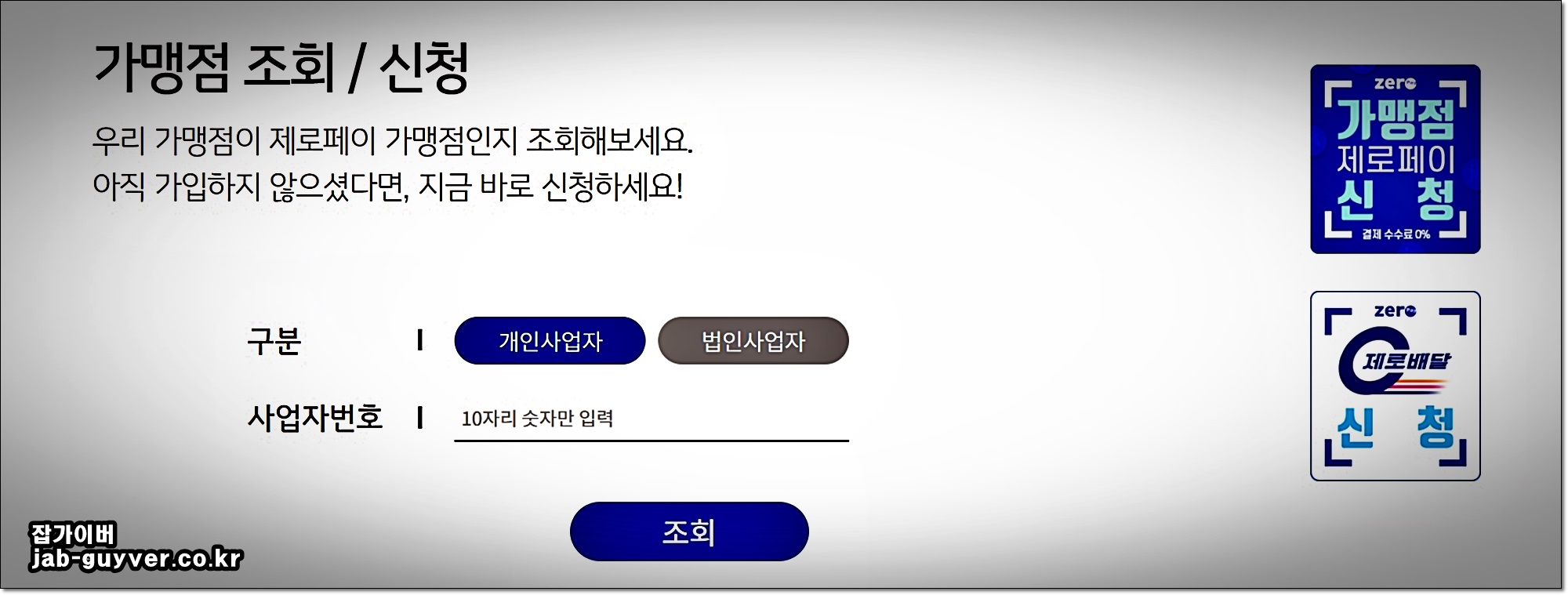 가맹점 조회 및 신청을 통해 개인사업자와 법인사업자를 조회할 수 있어요
