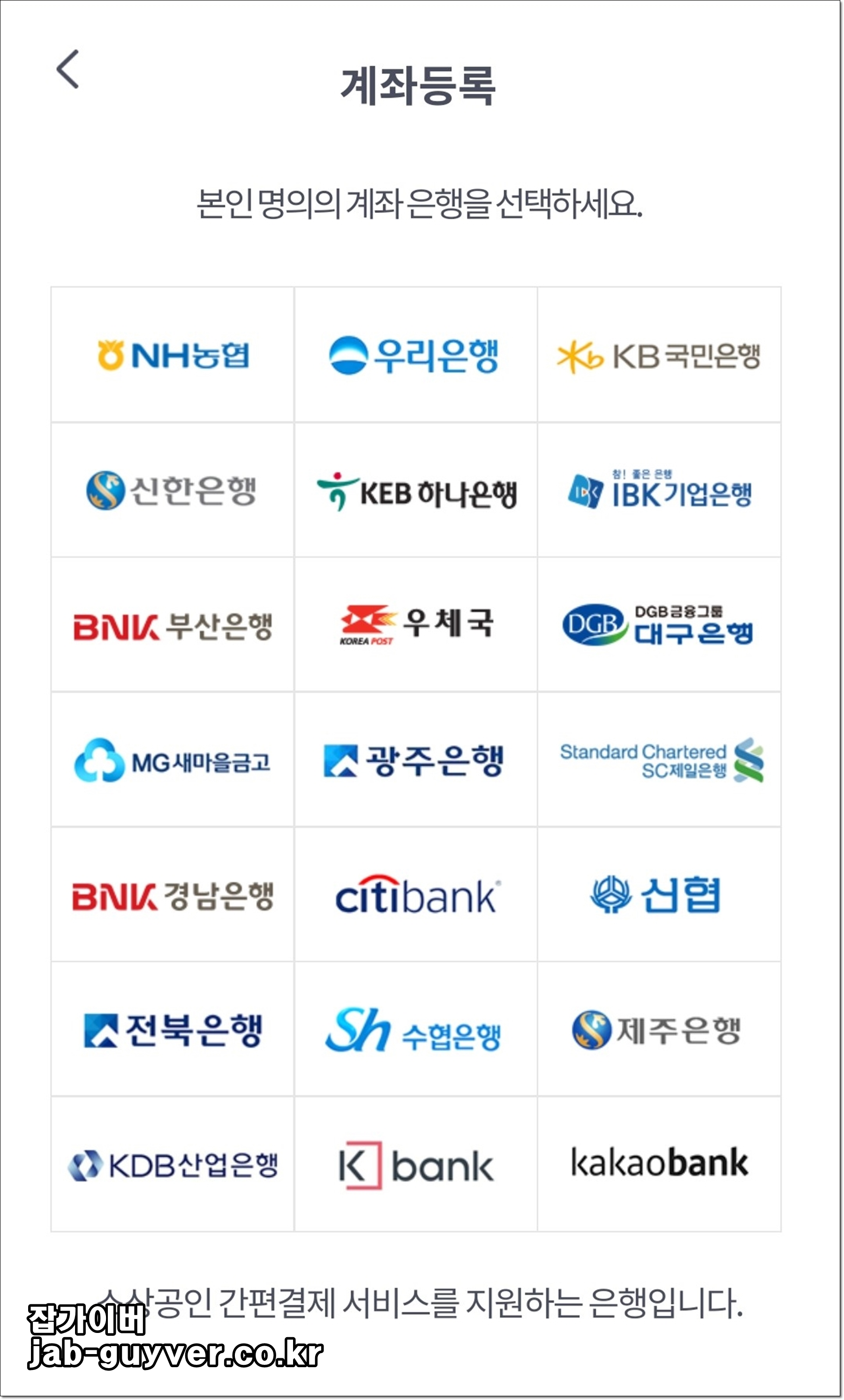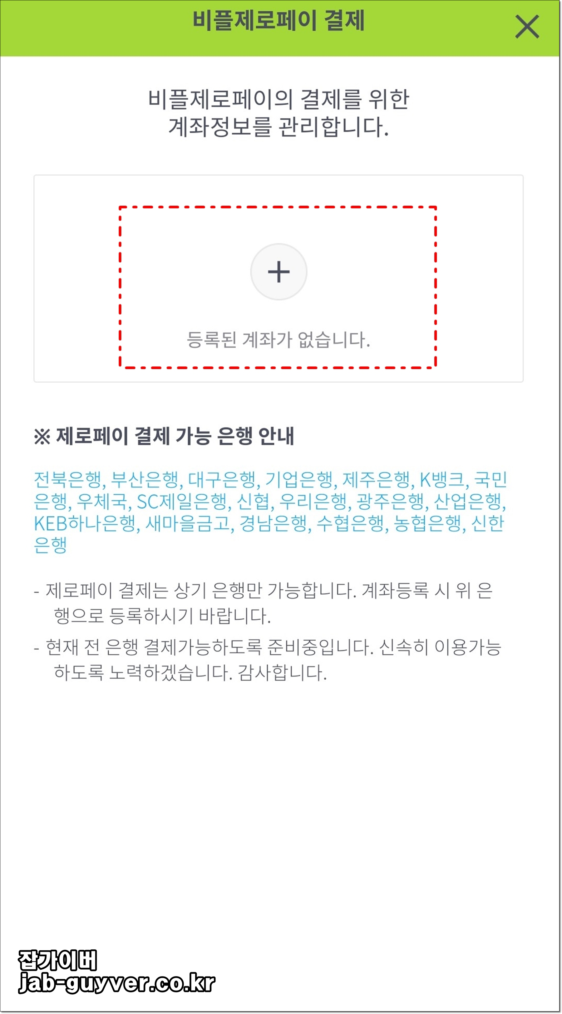 + 아이콘을 선택해 제로페이 결제 가능 은행을 참고해서 카드를 등록합니다.