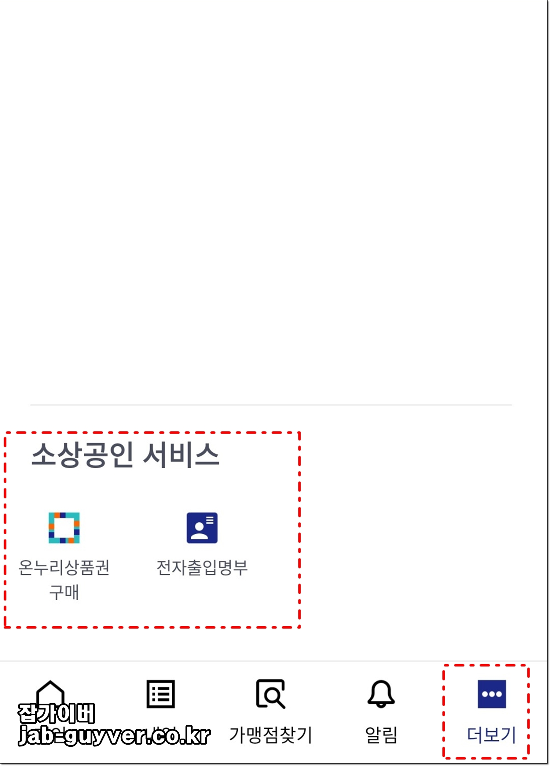 더보기를 선택하면 소상공인의 전자출입명부 관리를 할 수 있습니다.
