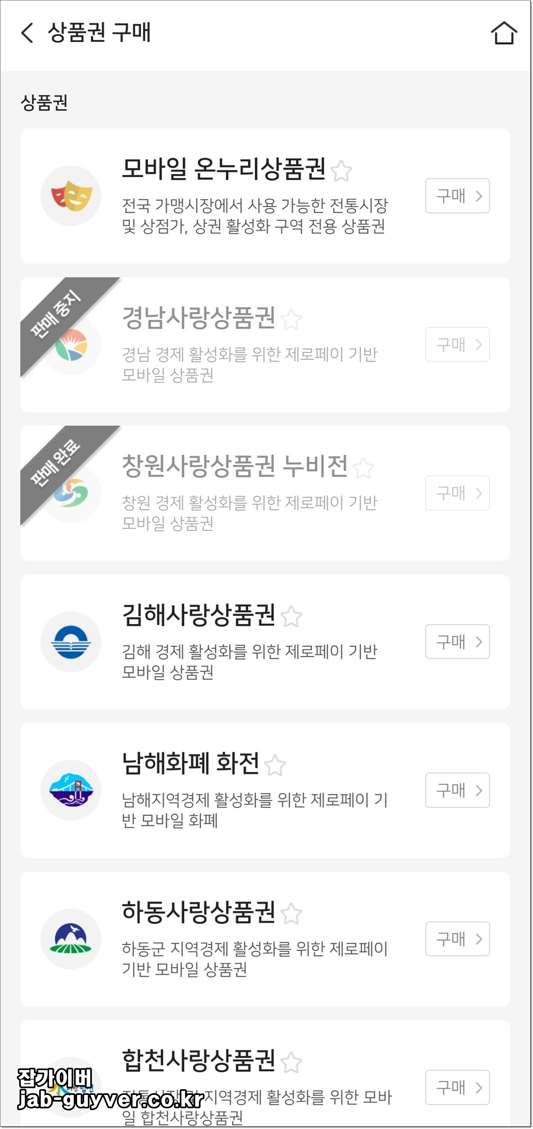 그 외에도 각 서울시 구에서 지원하는 상품권들도 구입할 수 있습니다.