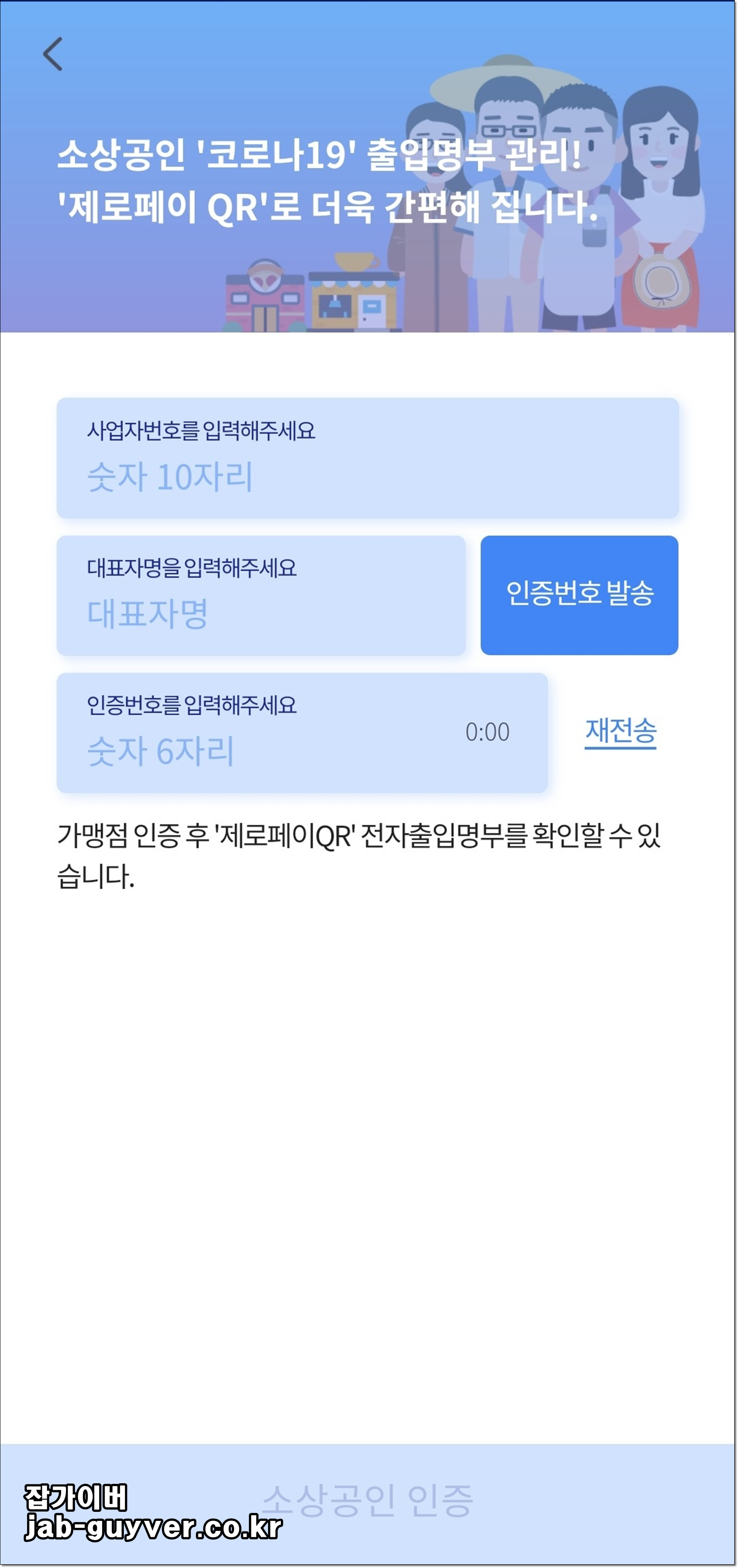 사업자 등록번호와 대표자명을 통해 인증번호 6자리를 발급받아 소상공인 인증을 합니다.