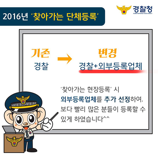 집에서 스마트폰으로 신청하고, 필요하면 근처 경찰서를 한 번만 들르는 식으로 끝낼 수도 있고, 단체 시설은 경찰이나 위탁업체가 직접 방문해 등록을 도와주는 방식도 운영 중입니다.: