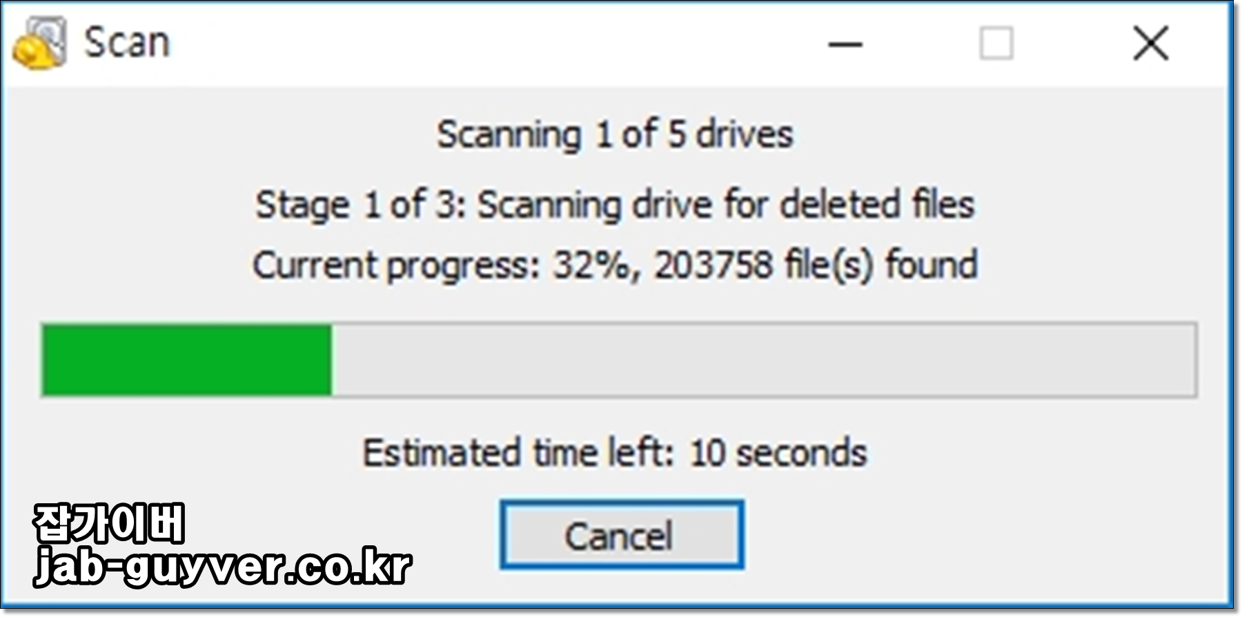 모든 데이터를 찾아 복구하는것은 시간이 오래 걸립니다.