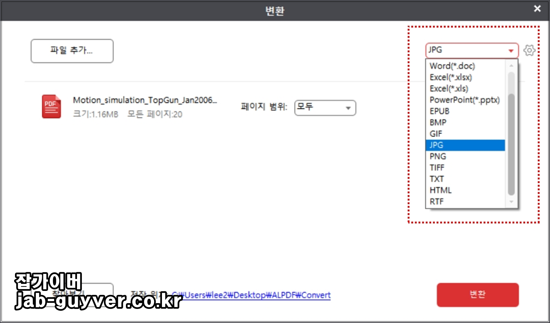 PDF 쪽수 설정 및 암호 JPG 저장 내보내기