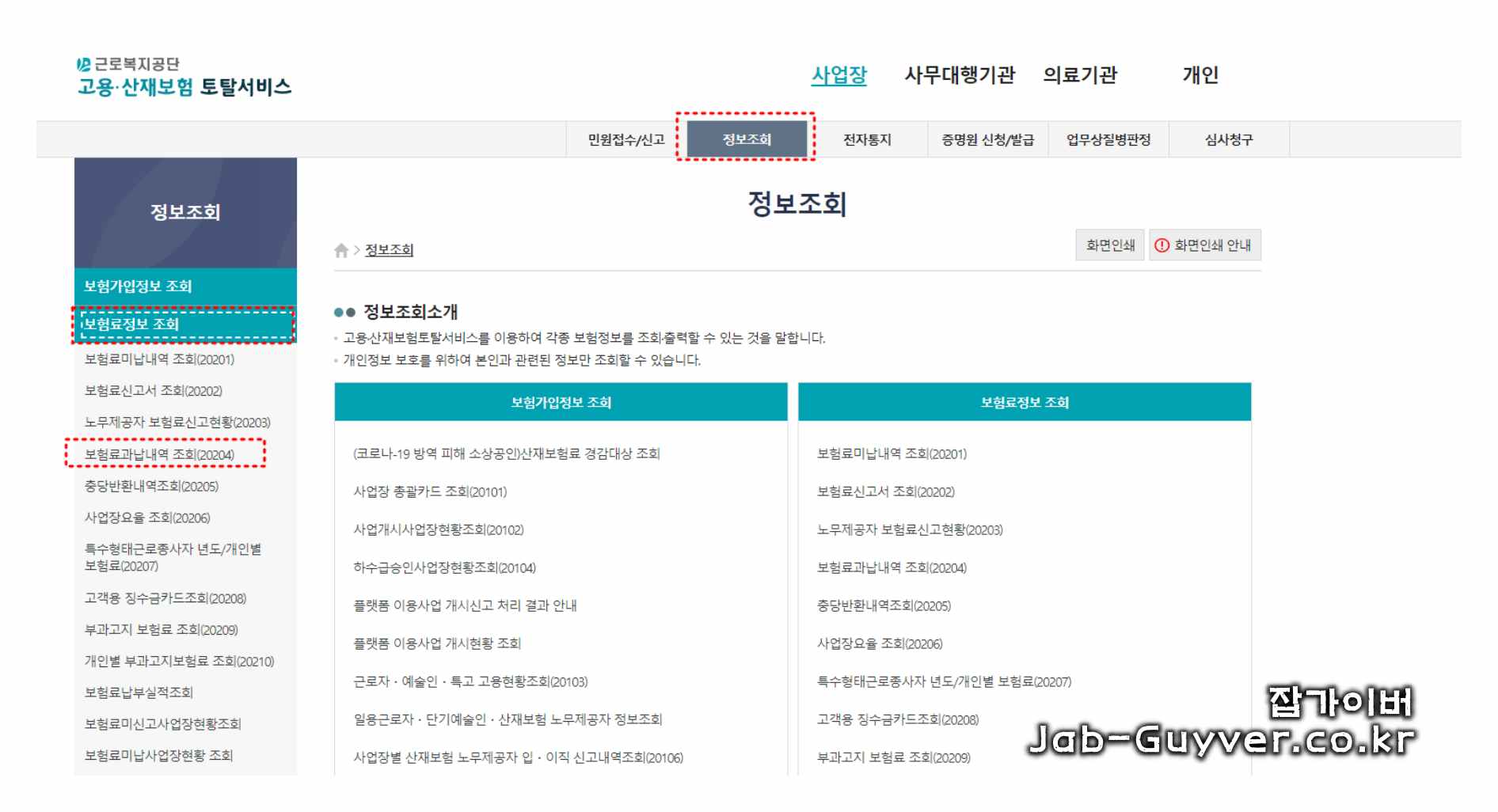 - 로그인 후 정보조회 메뉴에서 보험료정보 조회 → 보험료 과납내역 확인