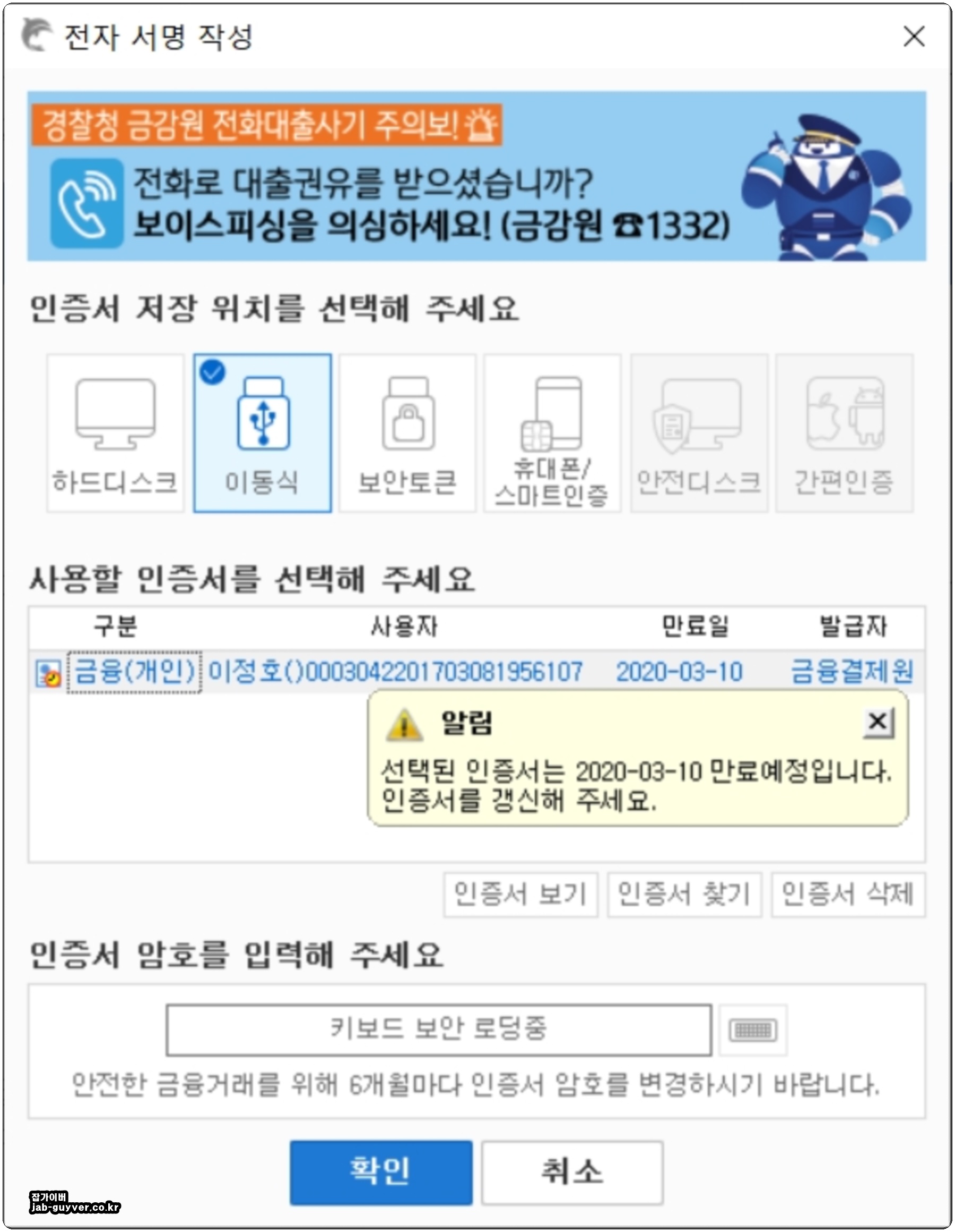 만약 이 시점에서 유효기간 만료 안내가 뜬다면, 아이폰으로 가져오기 전에 먼저 공인인증서 갱신을 처리해 두는 편이 나중에 다시 손 대지 않아도 되어 편합니다.