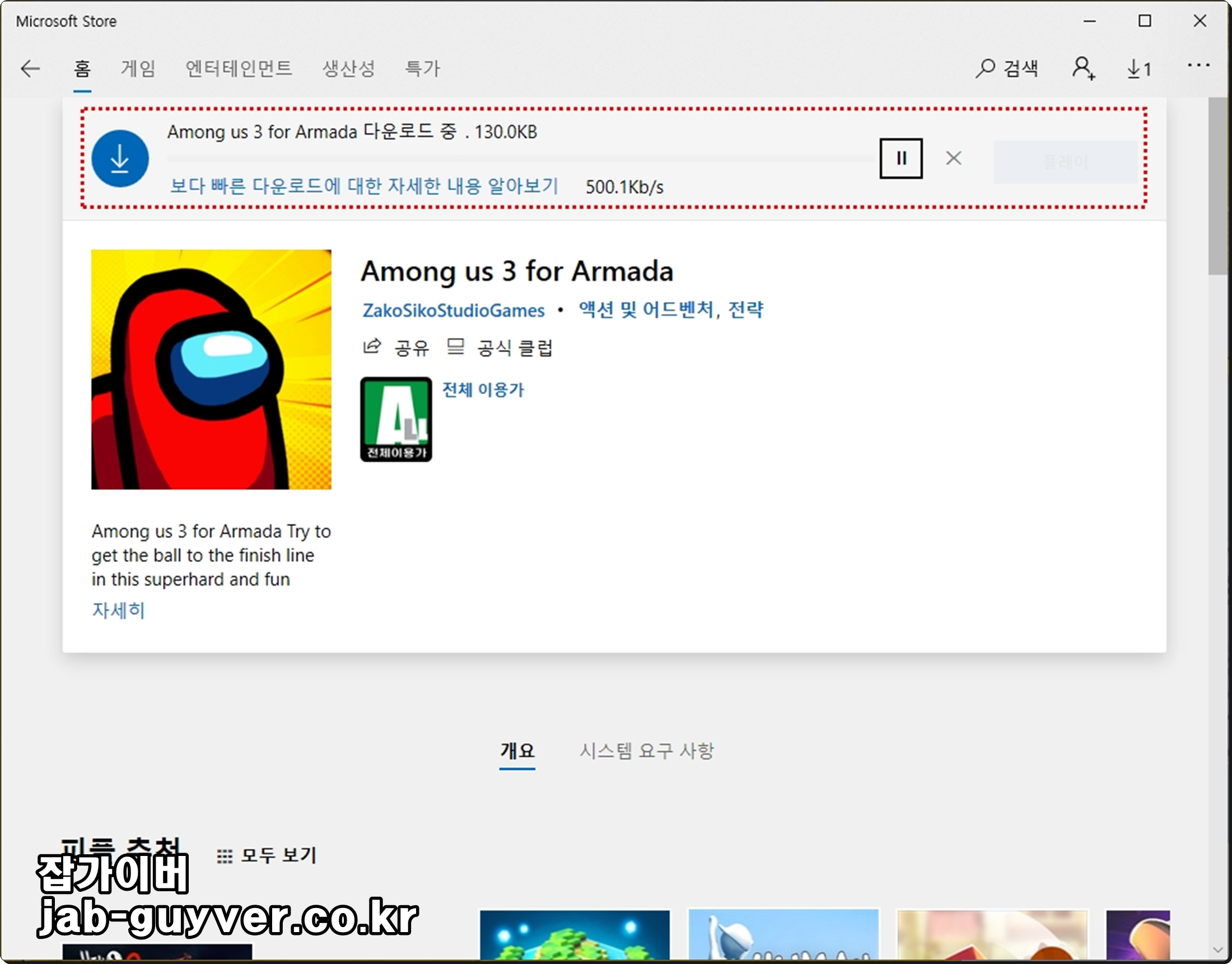 윈도우10, 11에서 Microsoft Store를 이용하는 경우에는 시작 메뉴나 작업표시줄에서 스토어 아이콘을 실행하고, 우측 상단 검색창에 Among Us를 입력해서 검색하면 됩니다. 예전 글에서 적어둔 것처럼 여러 모바일 게임도 함께 설치할 수 있어서 간단히 관리하기 좋아요.