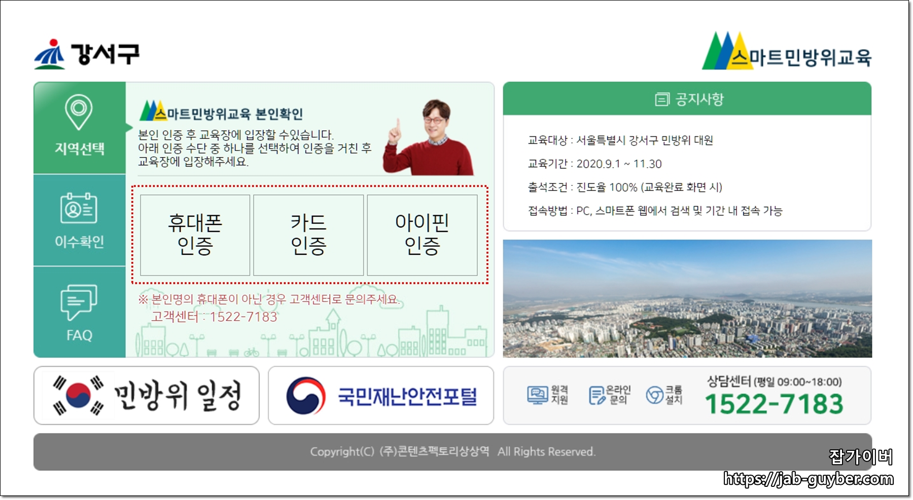 코로나19 바이러스로 인해 일반 민방위에서 2020년은 스마트민방위 교육으로 인해 인터넷을 통해 PC 및 모바일로 교육을 이수 할 수 있도록 되었습니다.