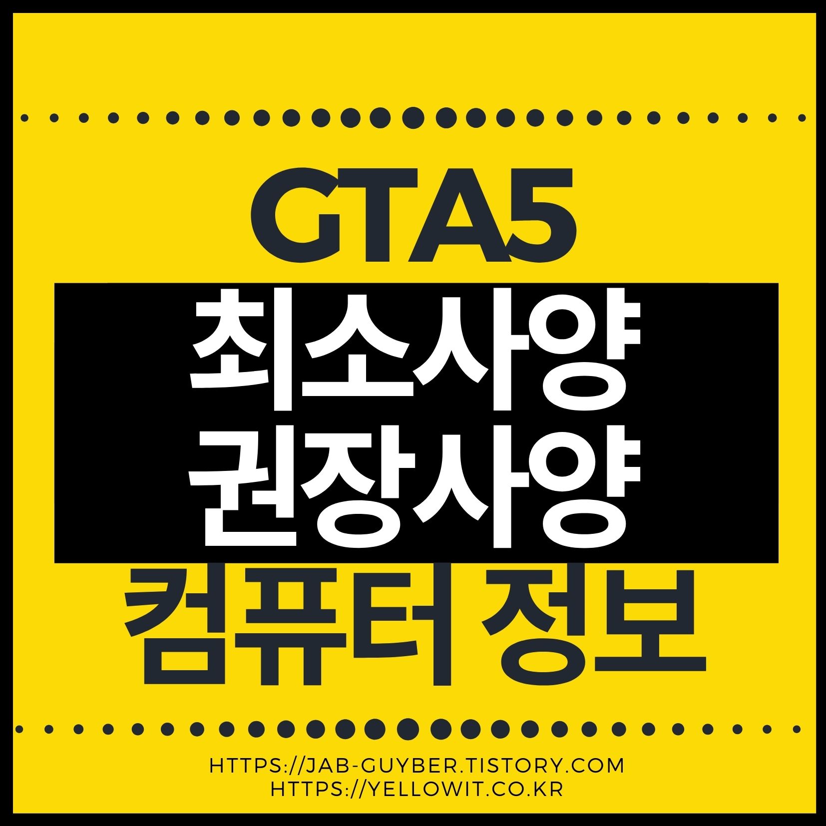 이제는 출시된지가 좀 되버린 GTA 시리즈의 최신작 GTA5를 플레이할 수 있는 컴퓨터 권장사양 및 최소사양을 알아보겠습니다.
