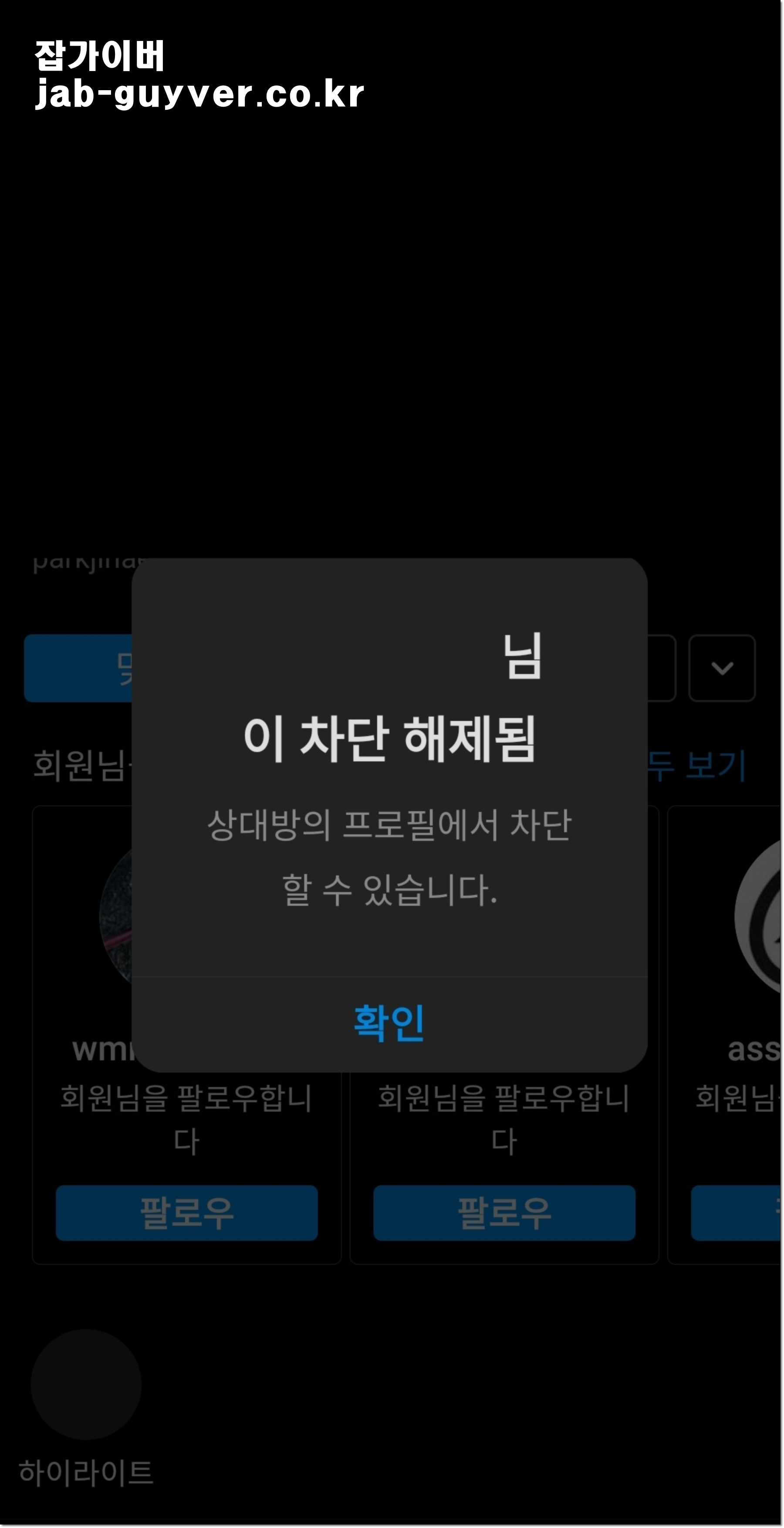 대놓고 “차단당했다” 알림이 뜨는 구조는 아니지만, 내 계정이 검색되지 않거나 프로필이 보이지 않는 걸로 눈치챌 수는 있습니다.