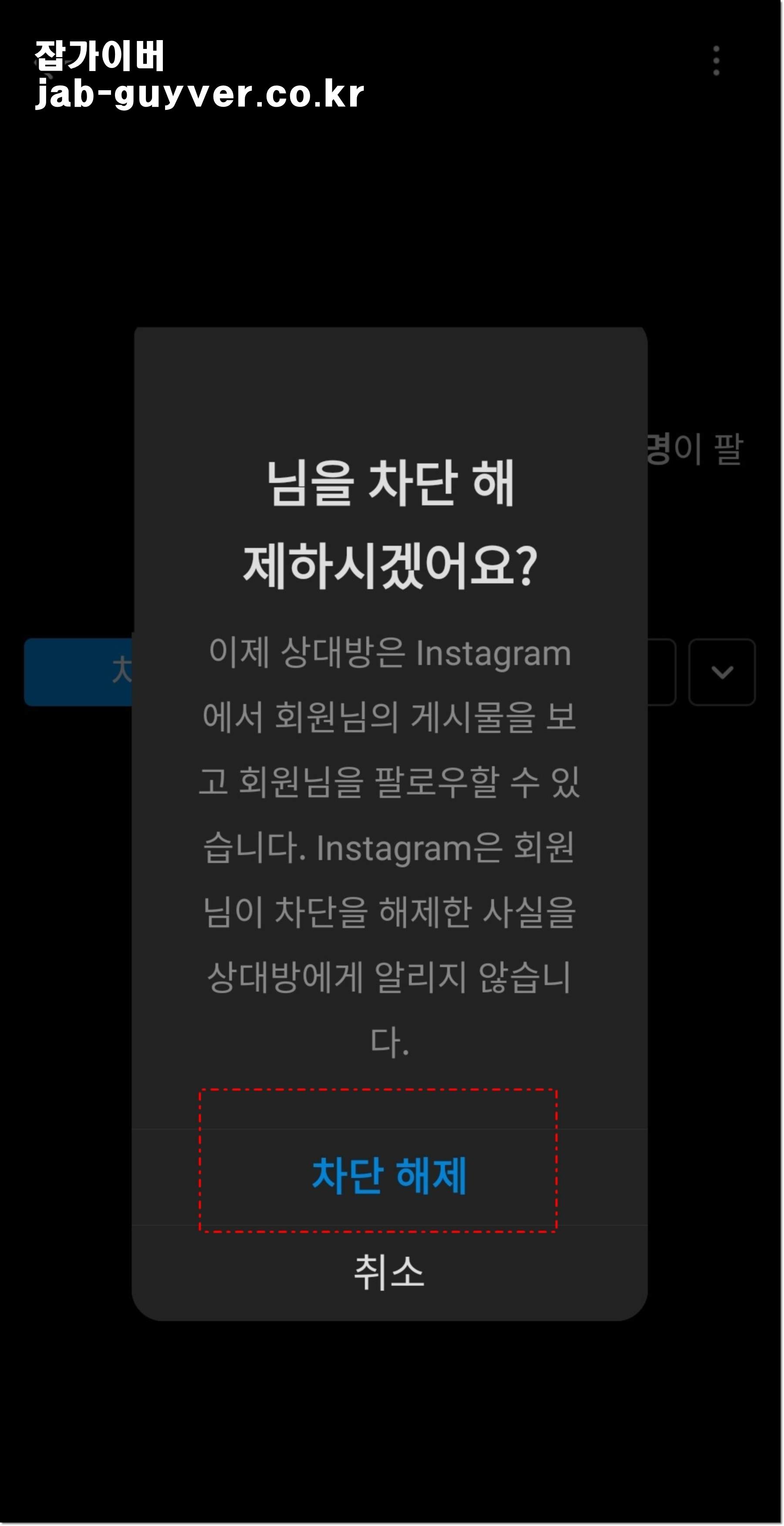 차단은 “상대 계정에서 해제”로 풀 수도 있고, 차단 목록에서 한 번에 관리할 수도 있습니다. 상대를 다시 볼 일이 생기면 아래 경로가 편합니다.