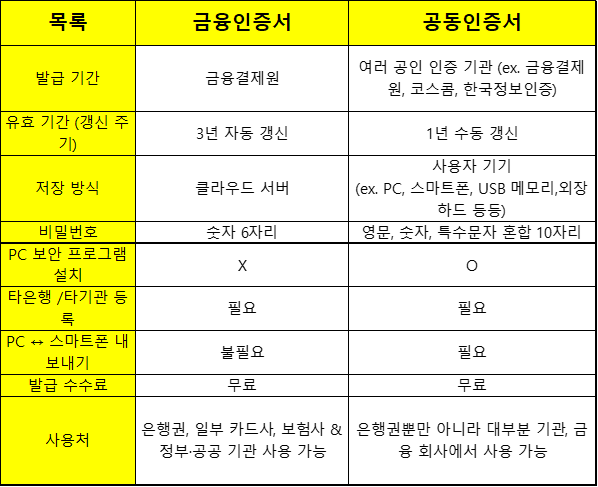 금융인증서 공동인증서 차이 및 인증서 발급방법 - 노랗it월드