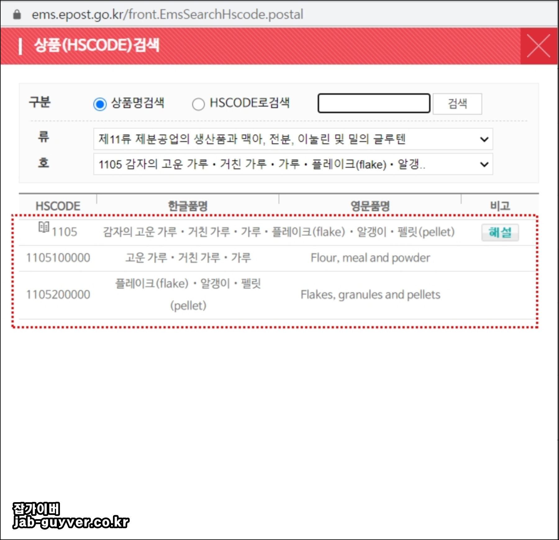 그리고 HS CODE를 선택해 배송하고자 하는 물품의 정보를 선택합니다.