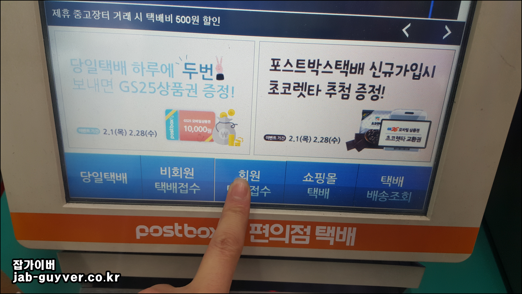 POSTBOX가 있는 편의점에 방문후 회원택배접수를 선택합니다.