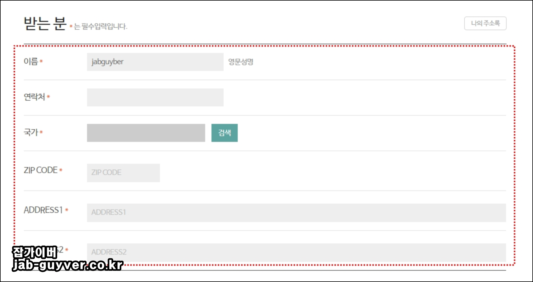 받는사람의 정보도 모두 영어로 입력합니다.