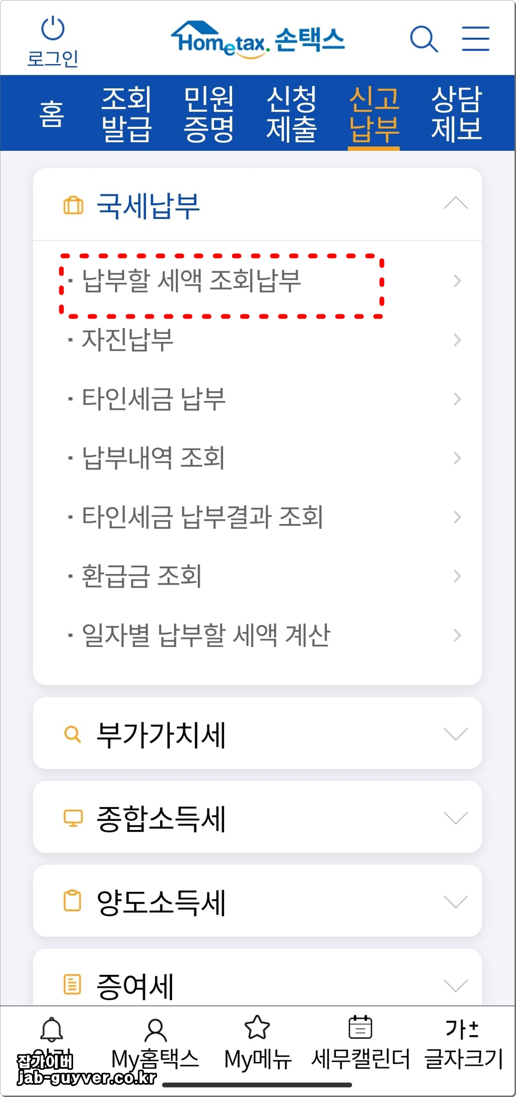 모바일 종부세 조회 납부