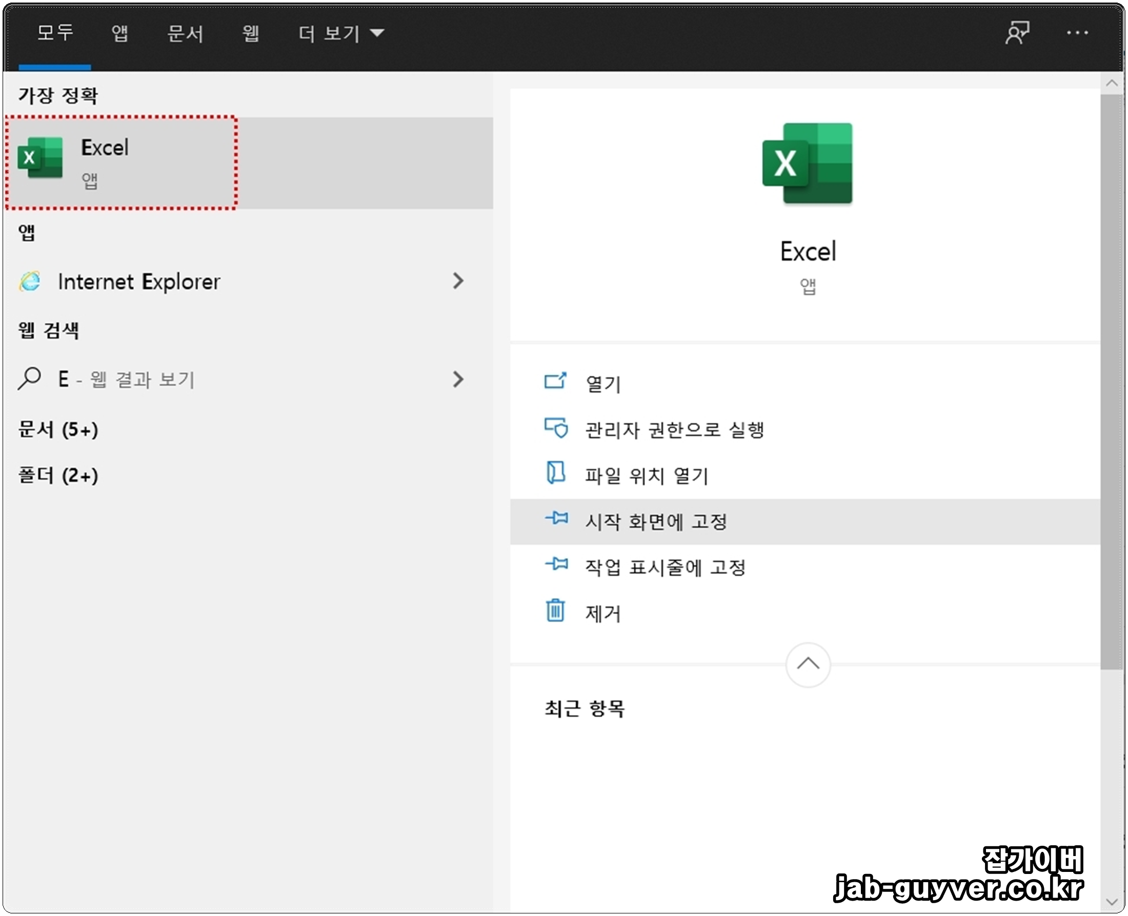 엑셀을 1개 실행 후 시작 메뉴에서 Excel을 추가로 선택해 선택합니다.