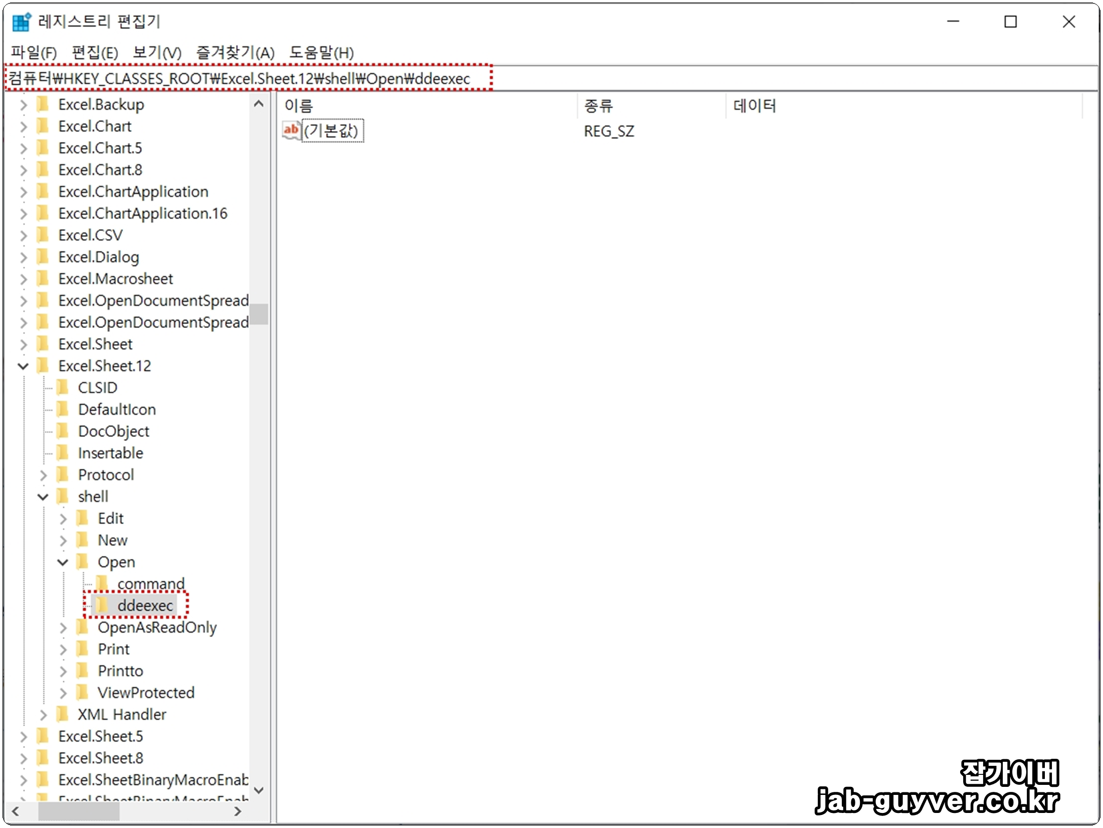 컴퓨터\HKEY_CLASSES_ROOT\Excel.Sheet.12\shell\Open