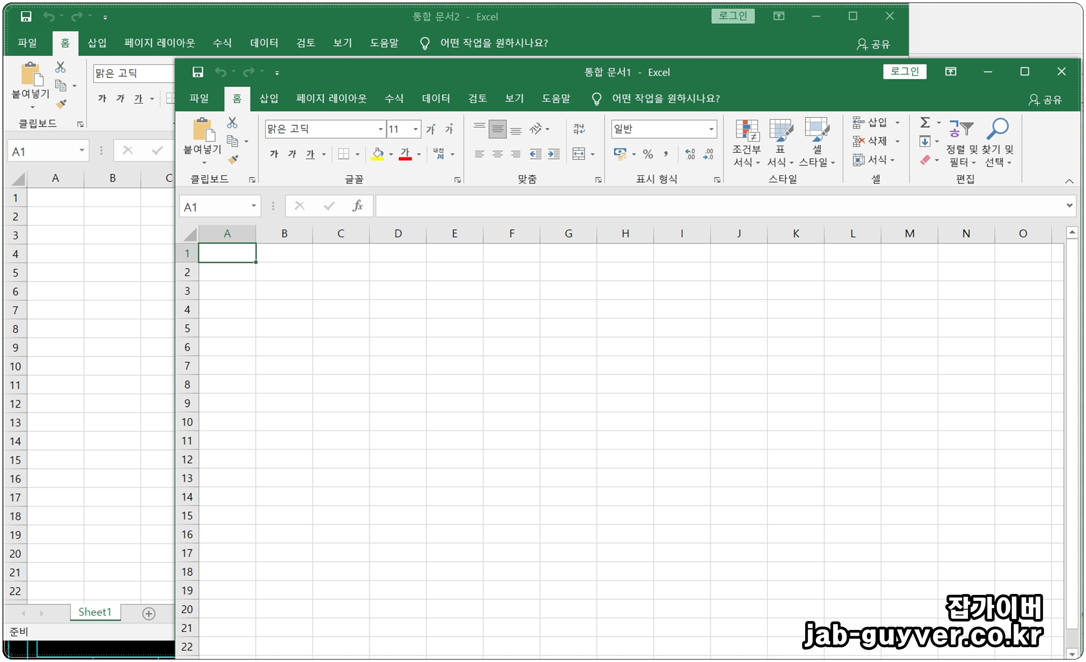 그럼 간단하게 엑셀 창이 두개 이상 복수로 실행됩니다.