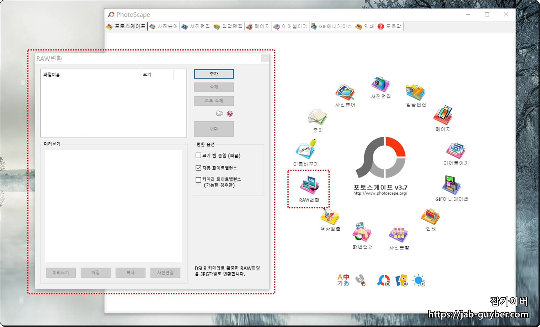 그리고 RAW 변환아이콘을 선택해 일괄적으로 RAW 사진을 변환할 수 있습니다.