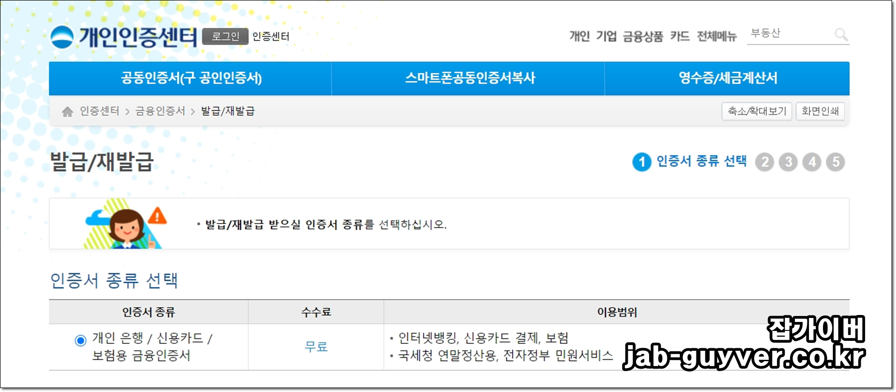 인증서 발급 및 재발급을 위한 종류로서 인터넷뱅킹 및 신용카드 결제,보험,국세청 연말정산,전자정부 민원서비스등 로그인에 사용됩니다.