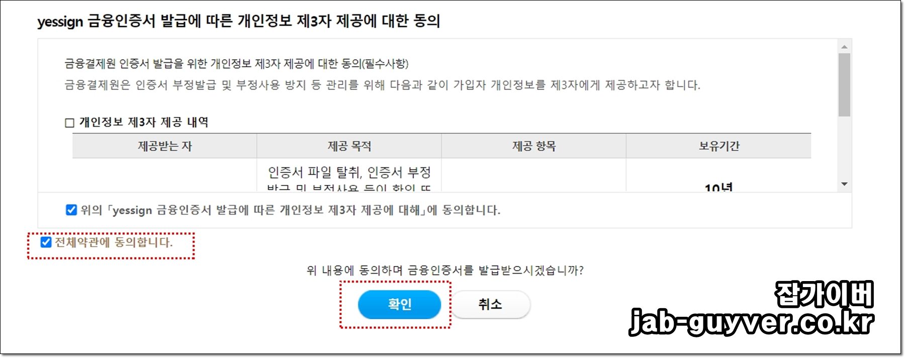 모든 약관에 동의 후 확인을 눌러줍니다.