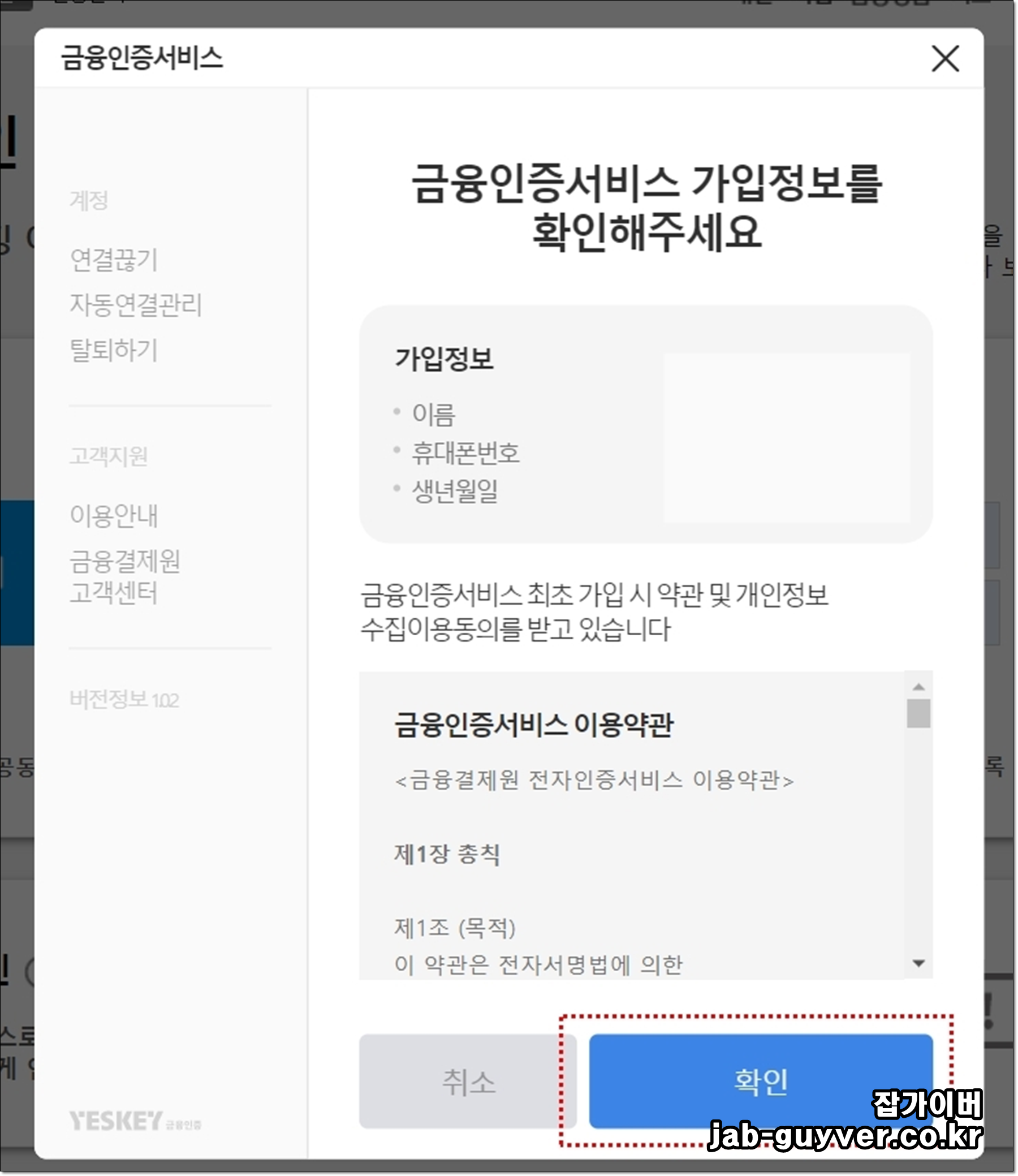 모든 약관에 동의 후 확인을 눌러줍니다.