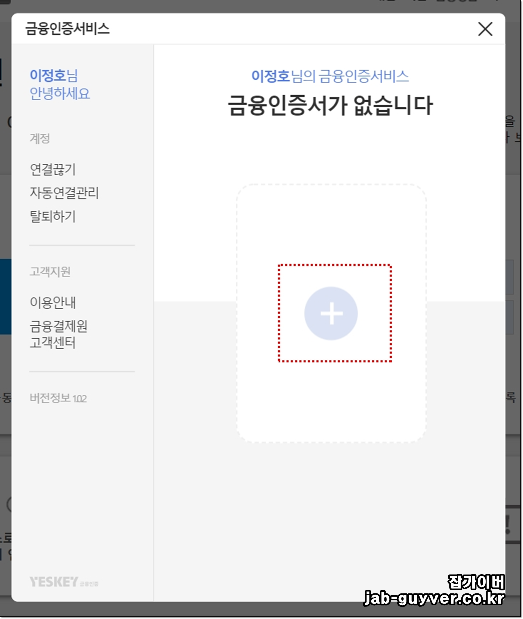 현재 금융인증서가 없기 때문에 + 눌러 인증서를 발급받습니다.