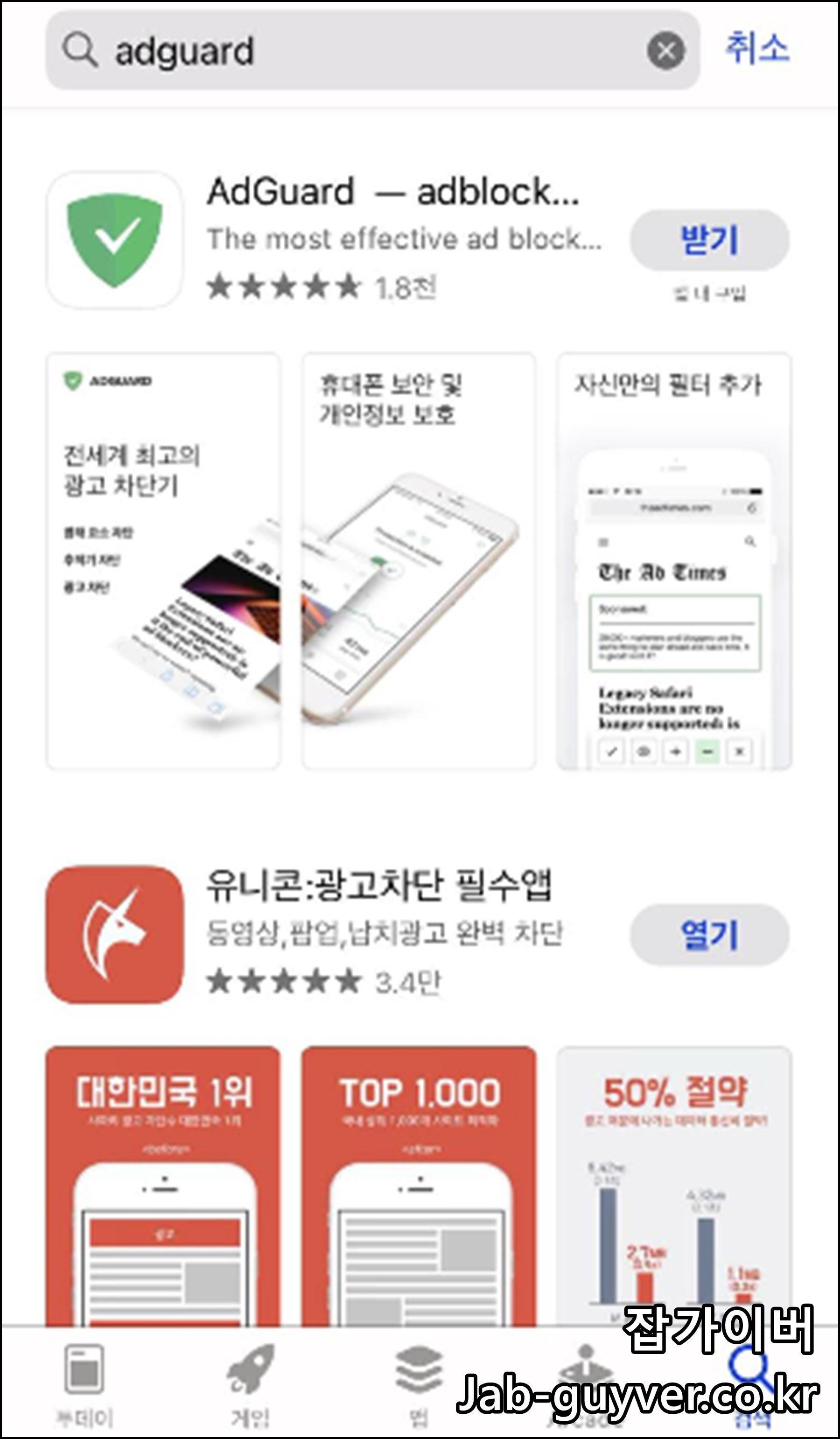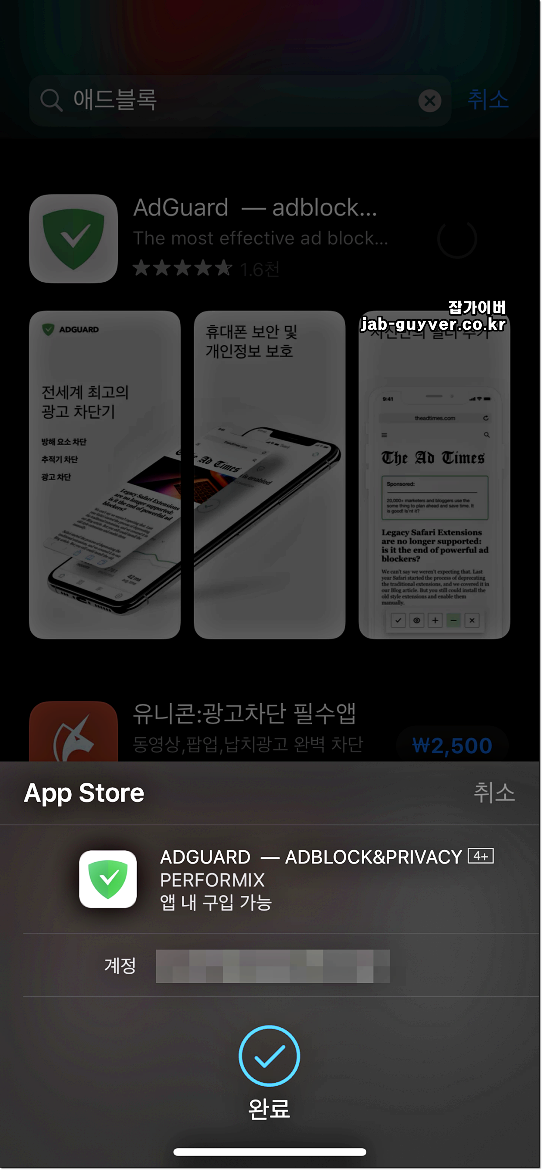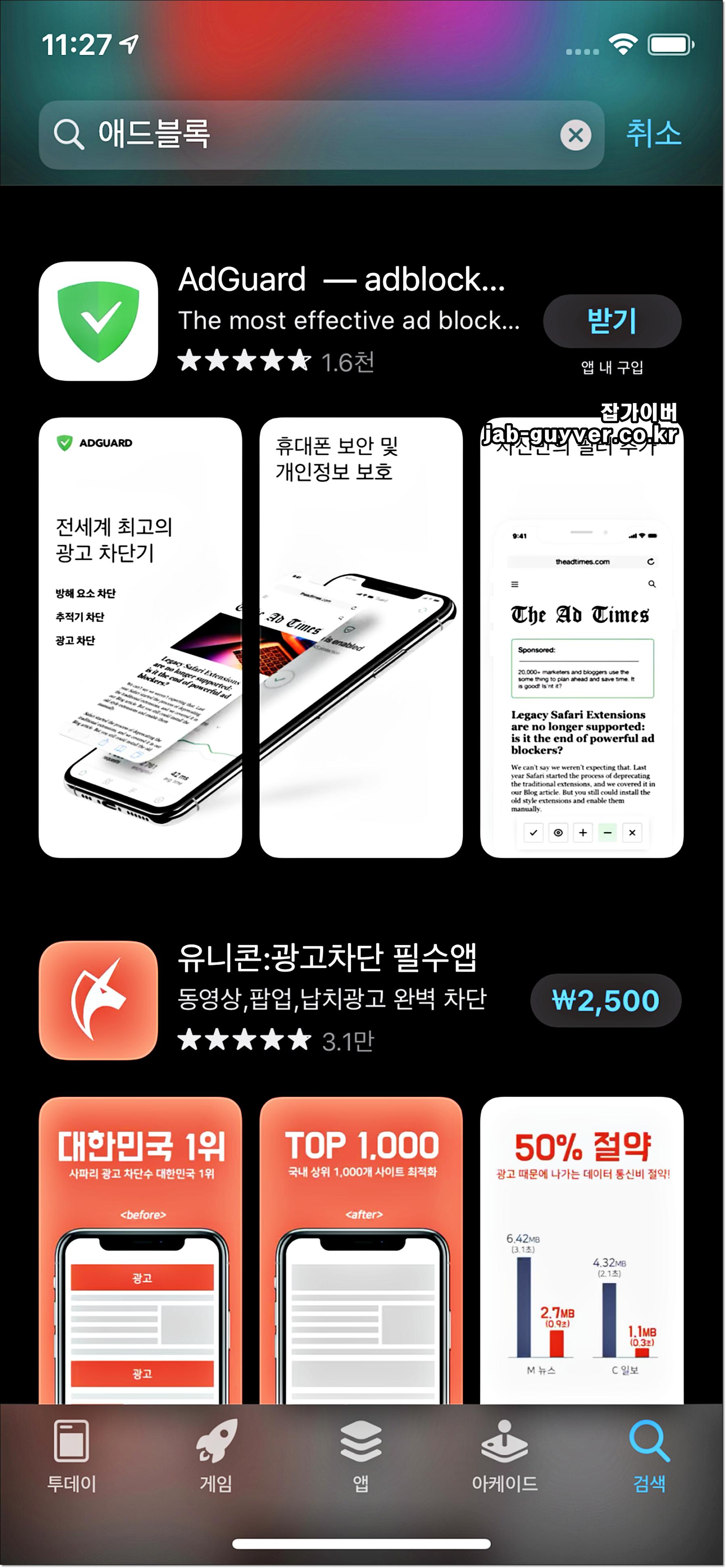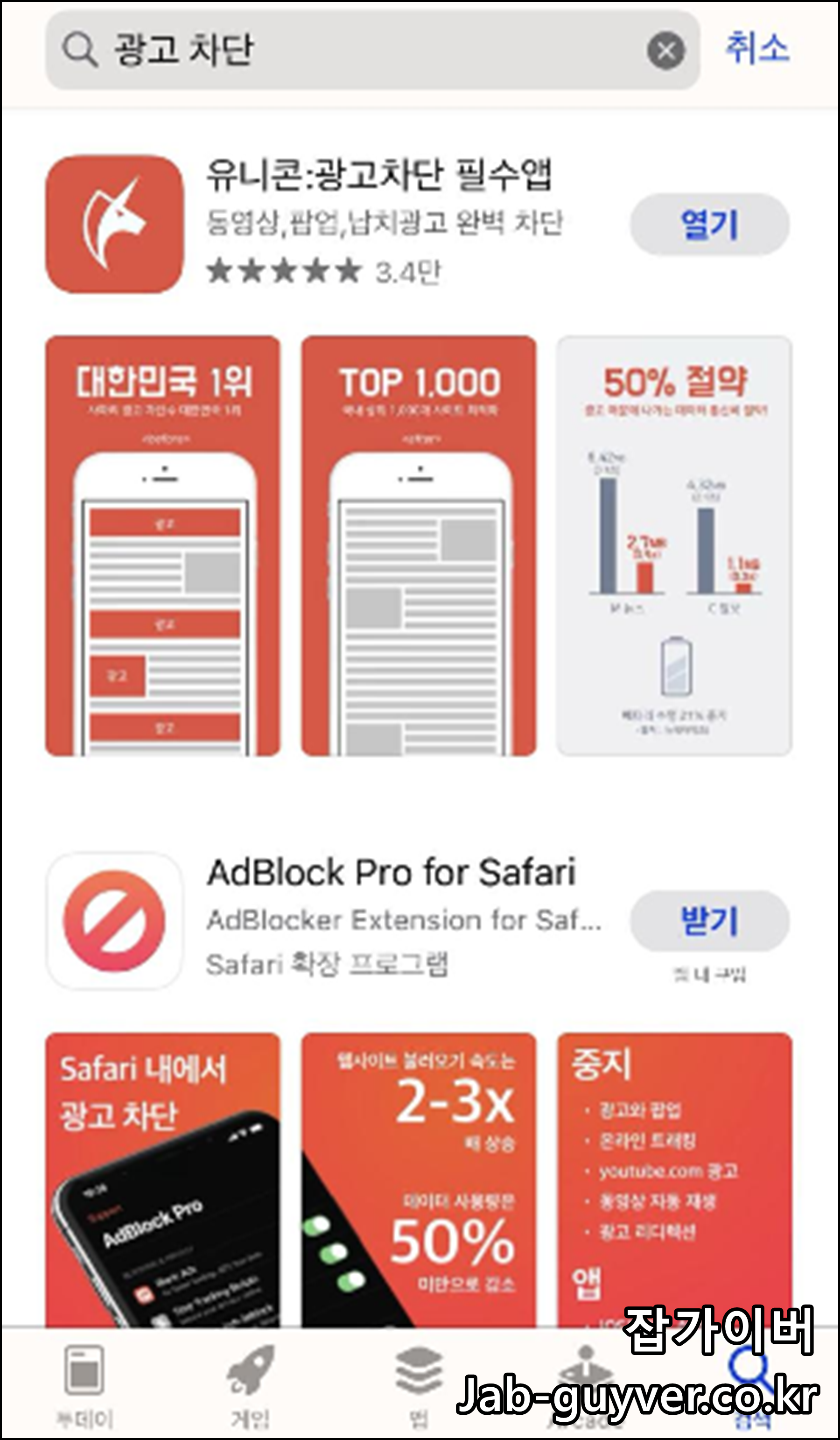 앱스토어에 검색시 애드가드와 애드블록 외에도 유니콘이라고 하는 동영상이나 팝업광고등을 완벽하게 차단하는 앱이 있습니다.