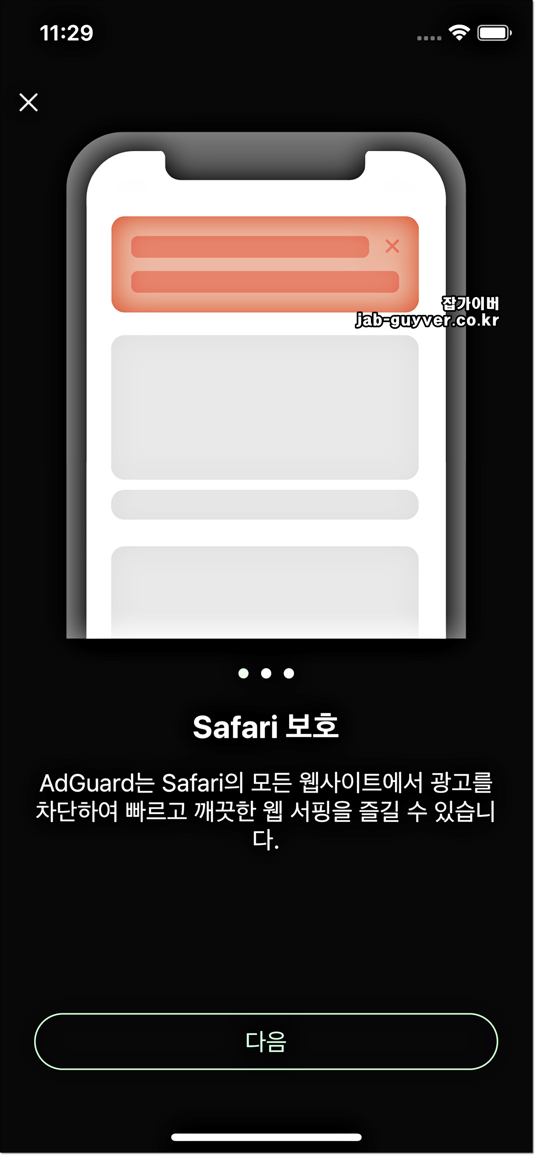 그리고 애플의 사파리 인터넷브라우저의 광고를 차단합니다.