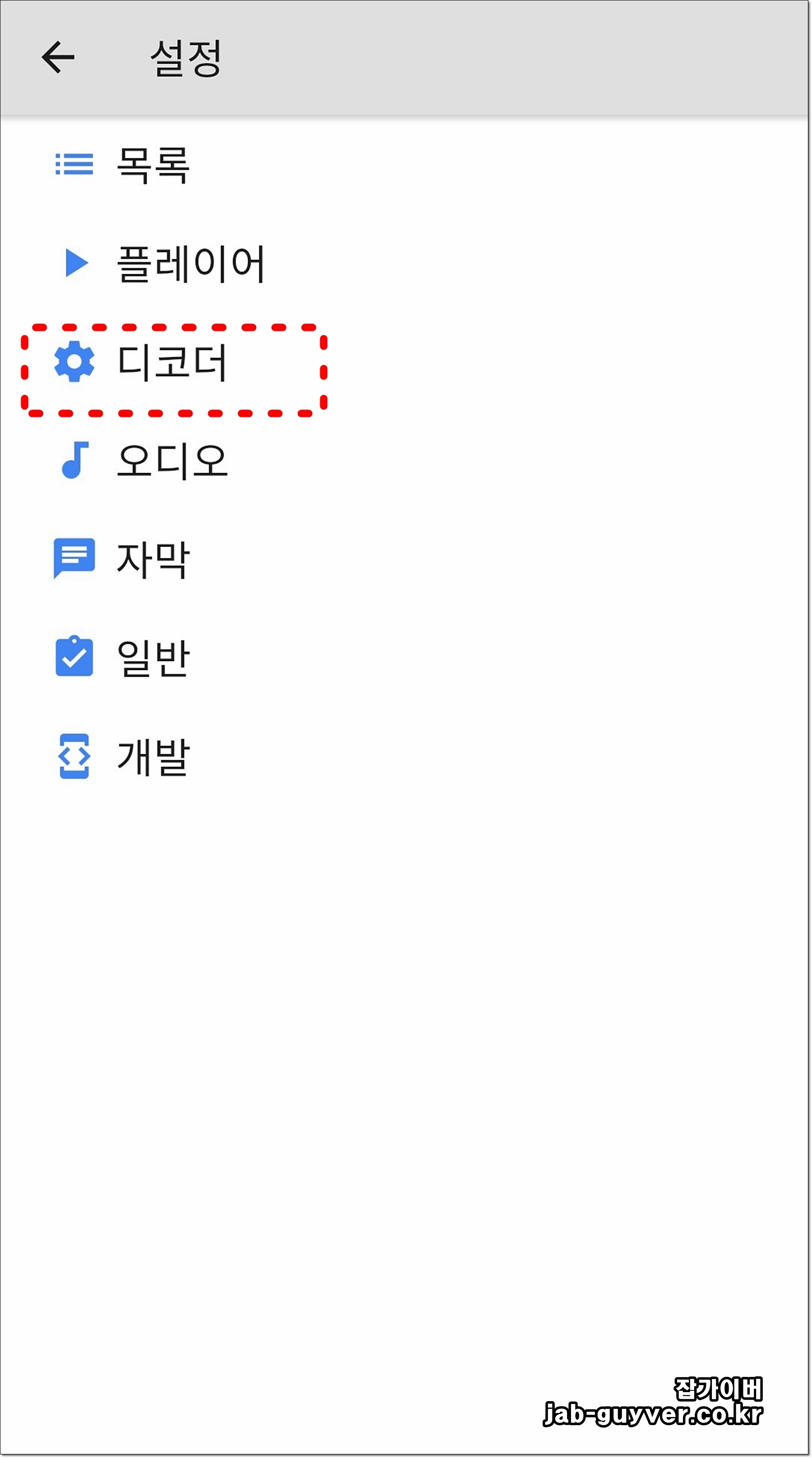 그리고 동영상 재생시 디코더의 종류를 필요에 따라 설정해줍니다.