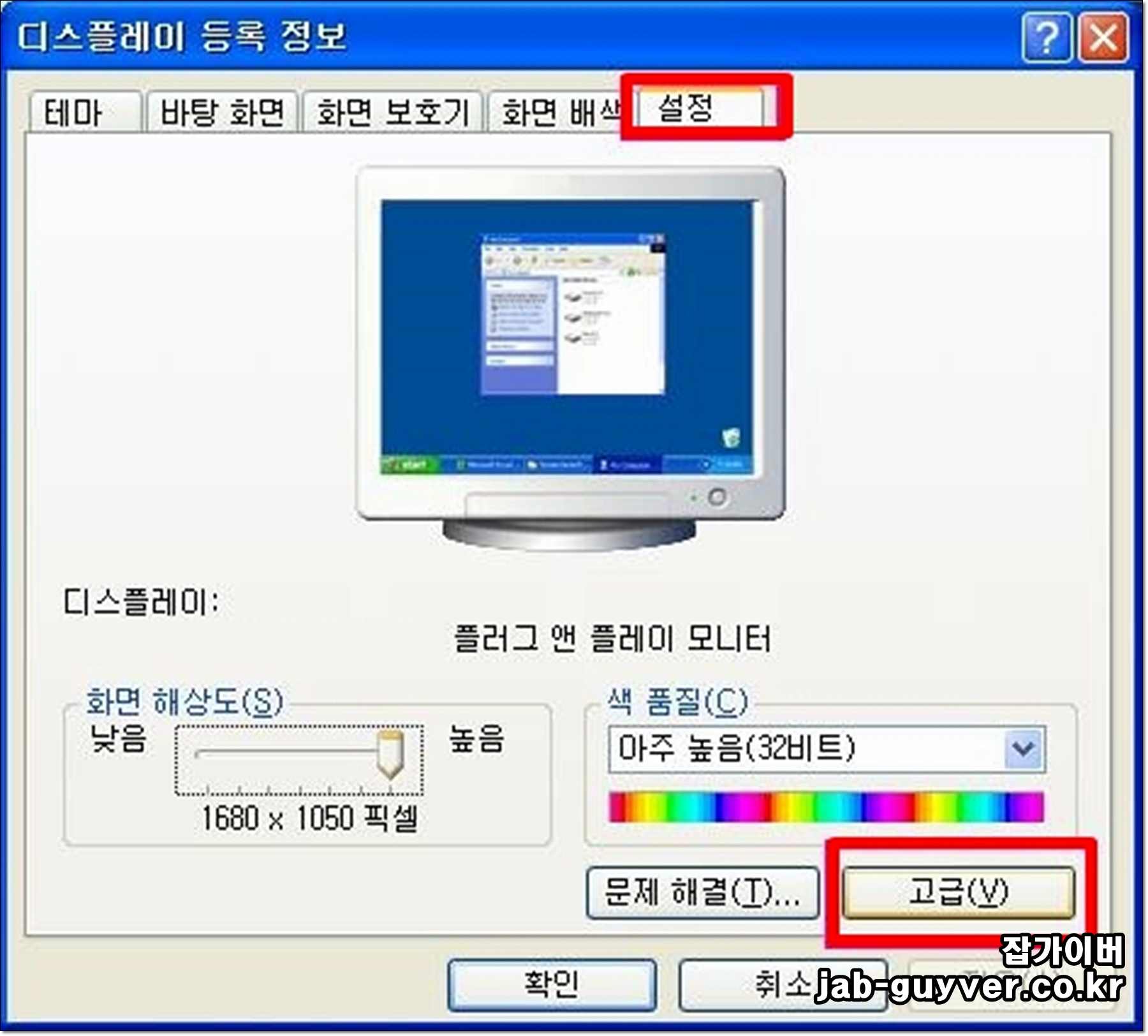 그리고 설정탭으로 이동 후 고급을 선택합니다.