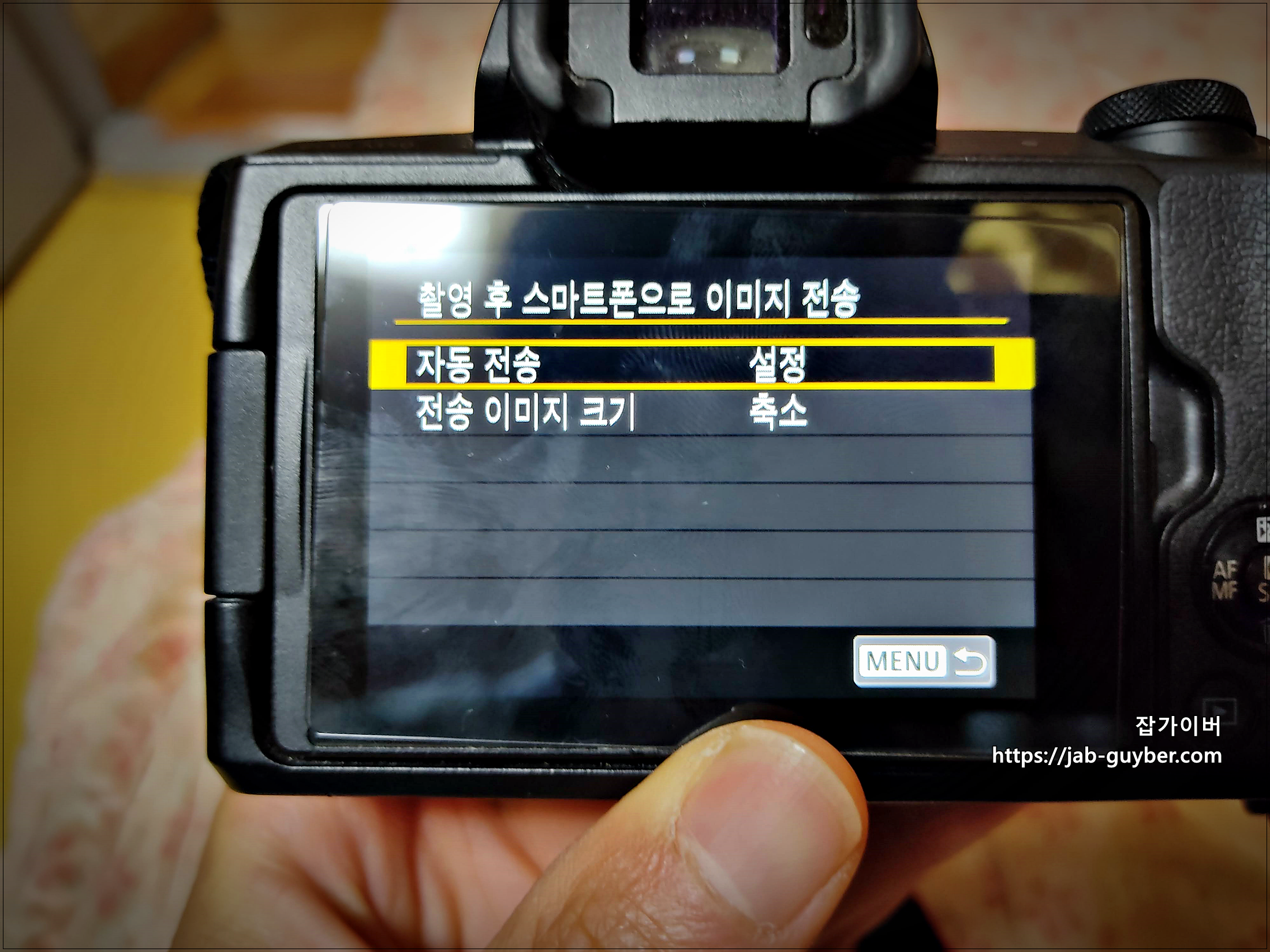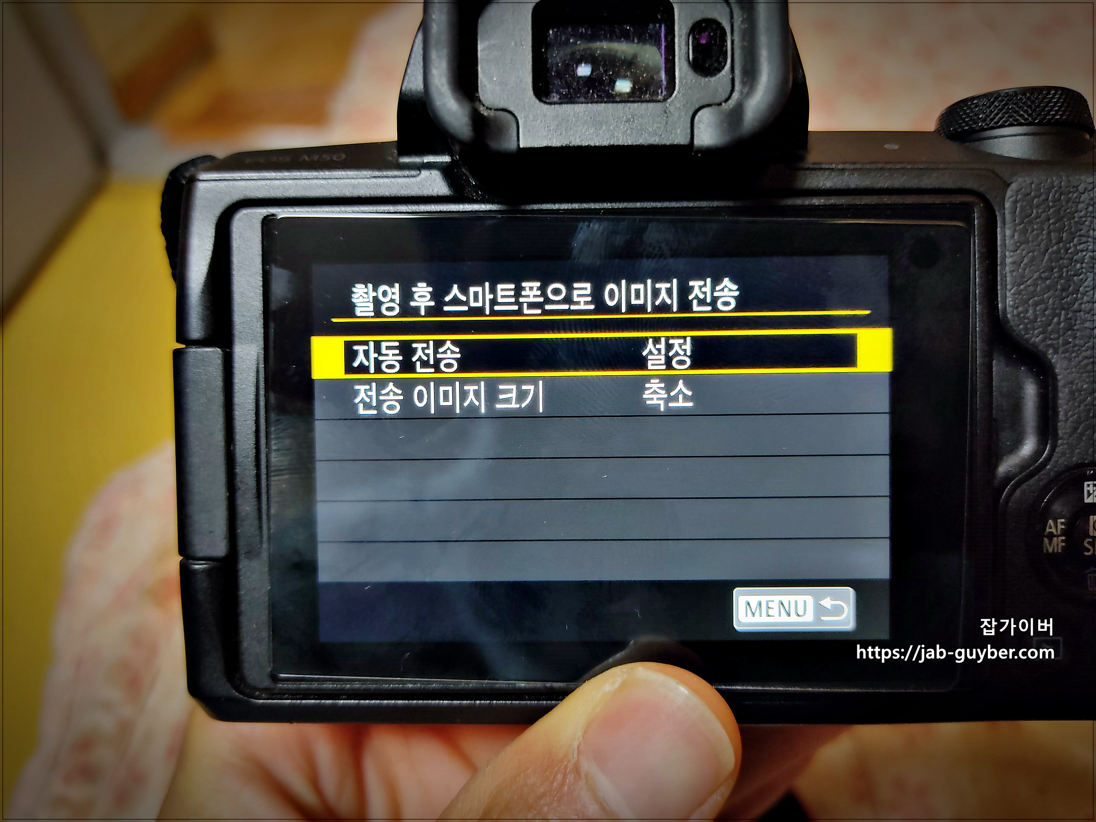 우선 캐논 카메라에 무선통신 설정을 진행합니다.