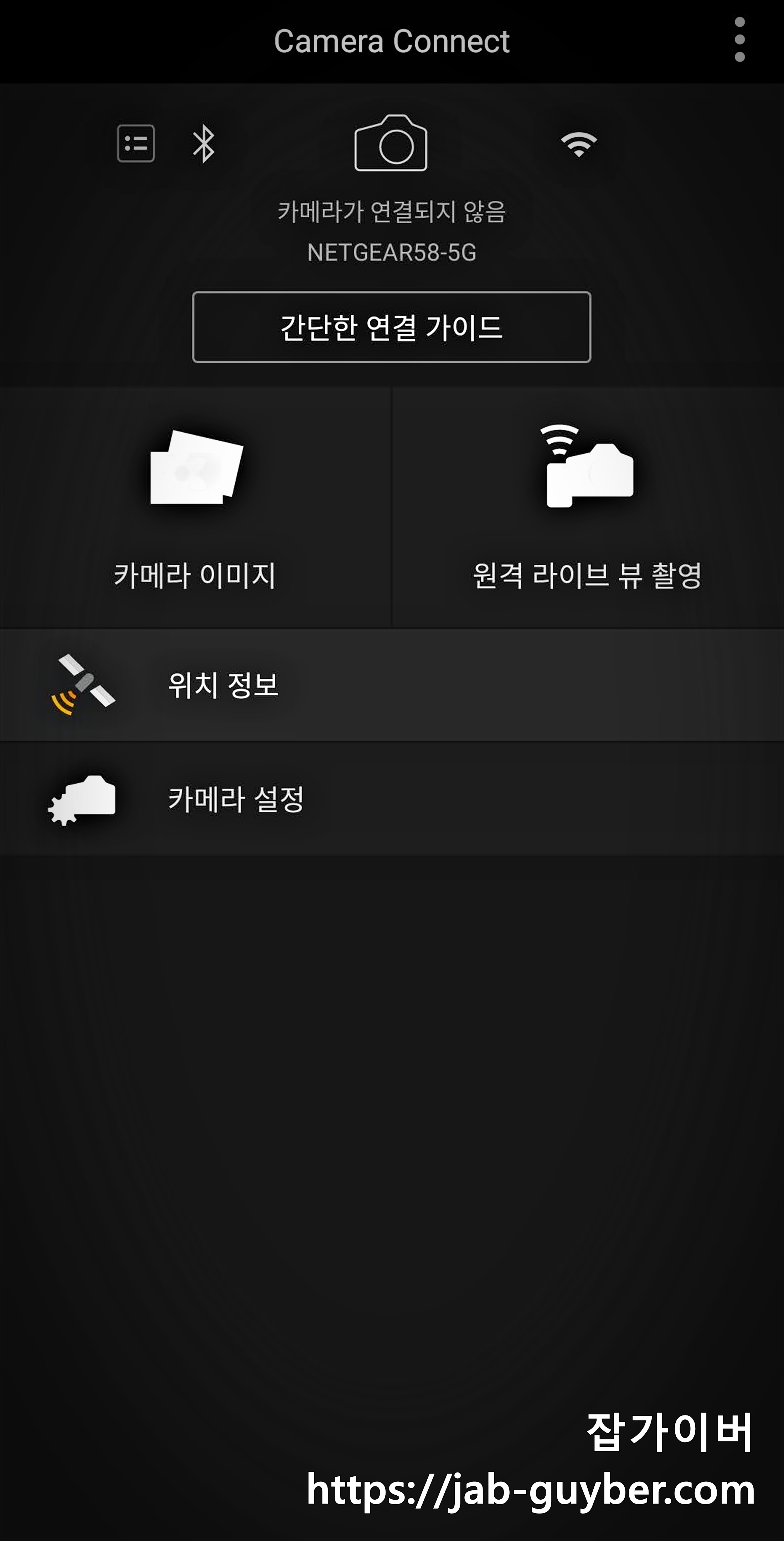 아이폰 및 안드로이드 기준 앱스토어에서 "Camera Connect"를 검색해서 설치 후 와이파이를 활성화한 상태에서 앱을 실행합니다.