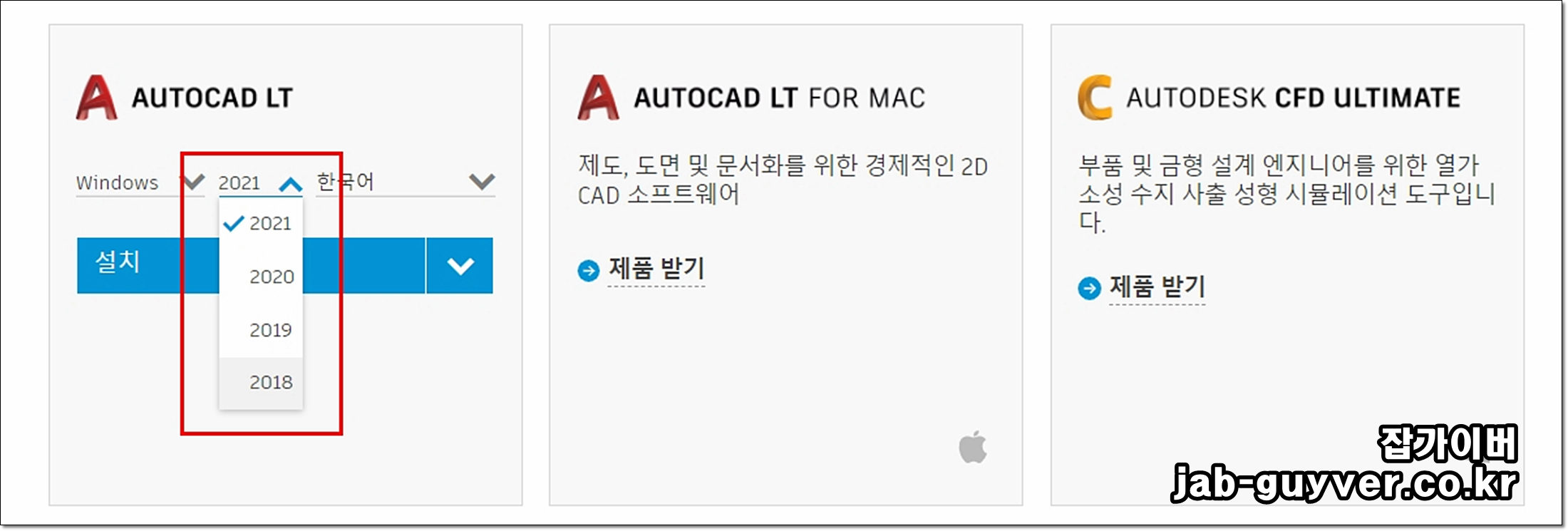 원하는 오토캐드 제품을 선택합니다.
