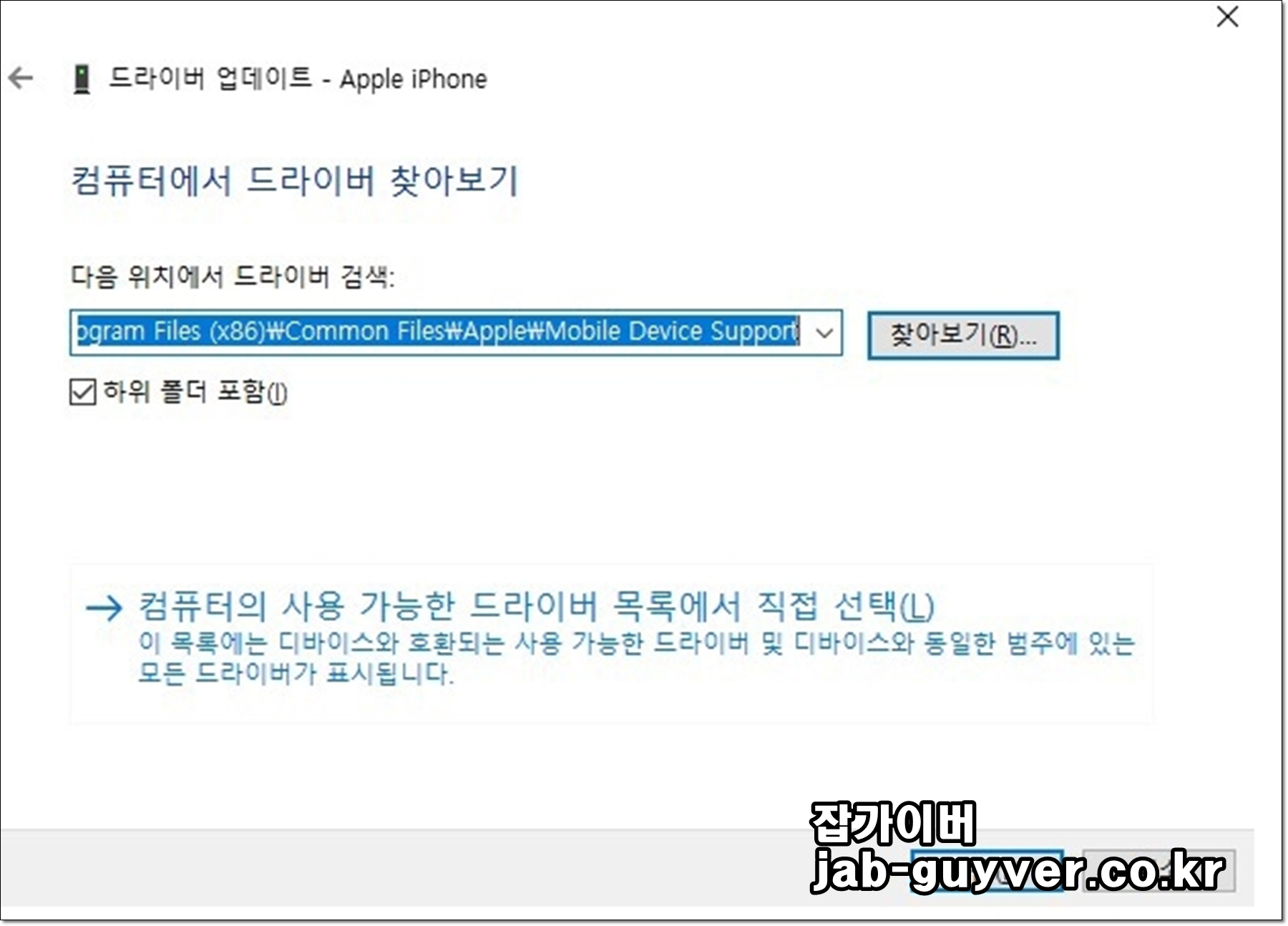 휴대용 기기에 있는 아이폰의 드라이버 업데이트도 진행합니다.
