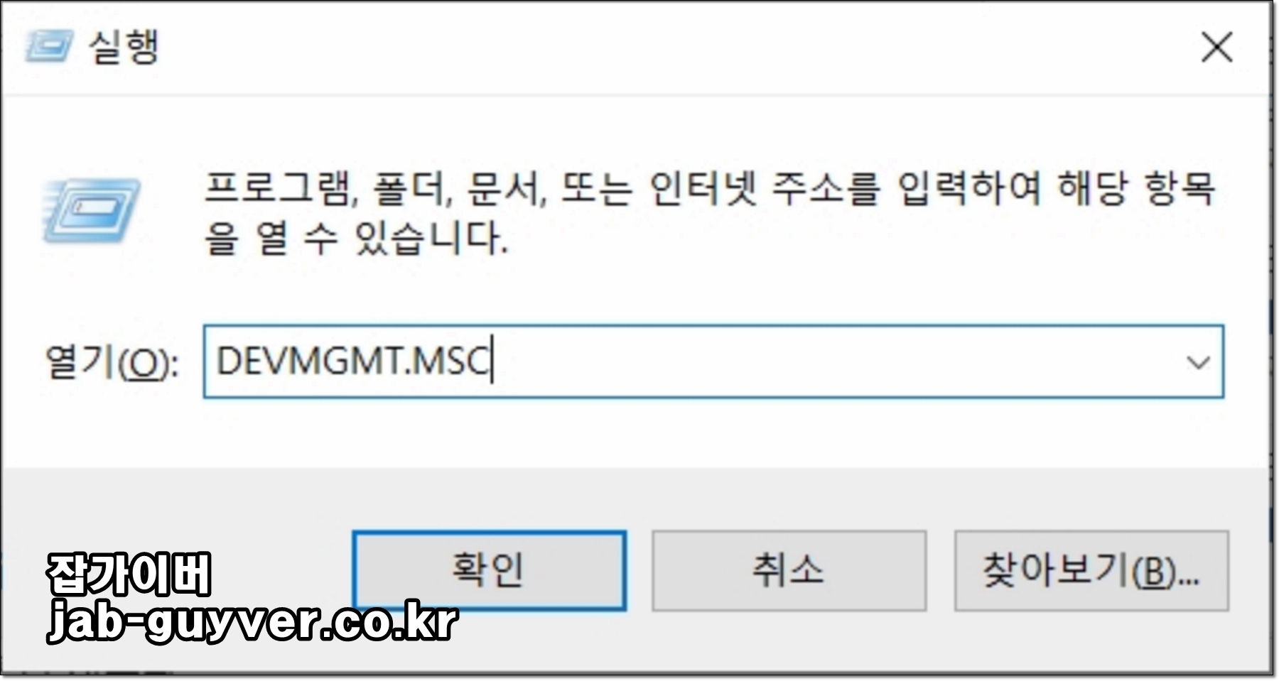 실행을 눌러 "Devmgmt.MSC"를 입력합니다.