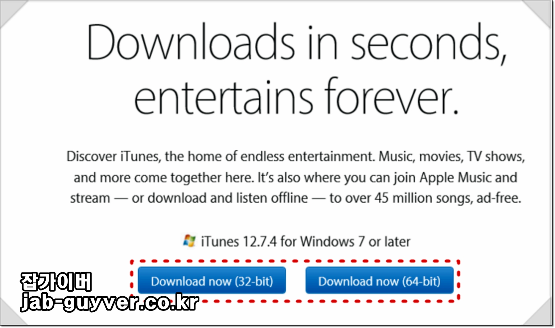 아이튠즈 또한 애플에서 가장 최신 버전을 다운로드하여 설치합니다.