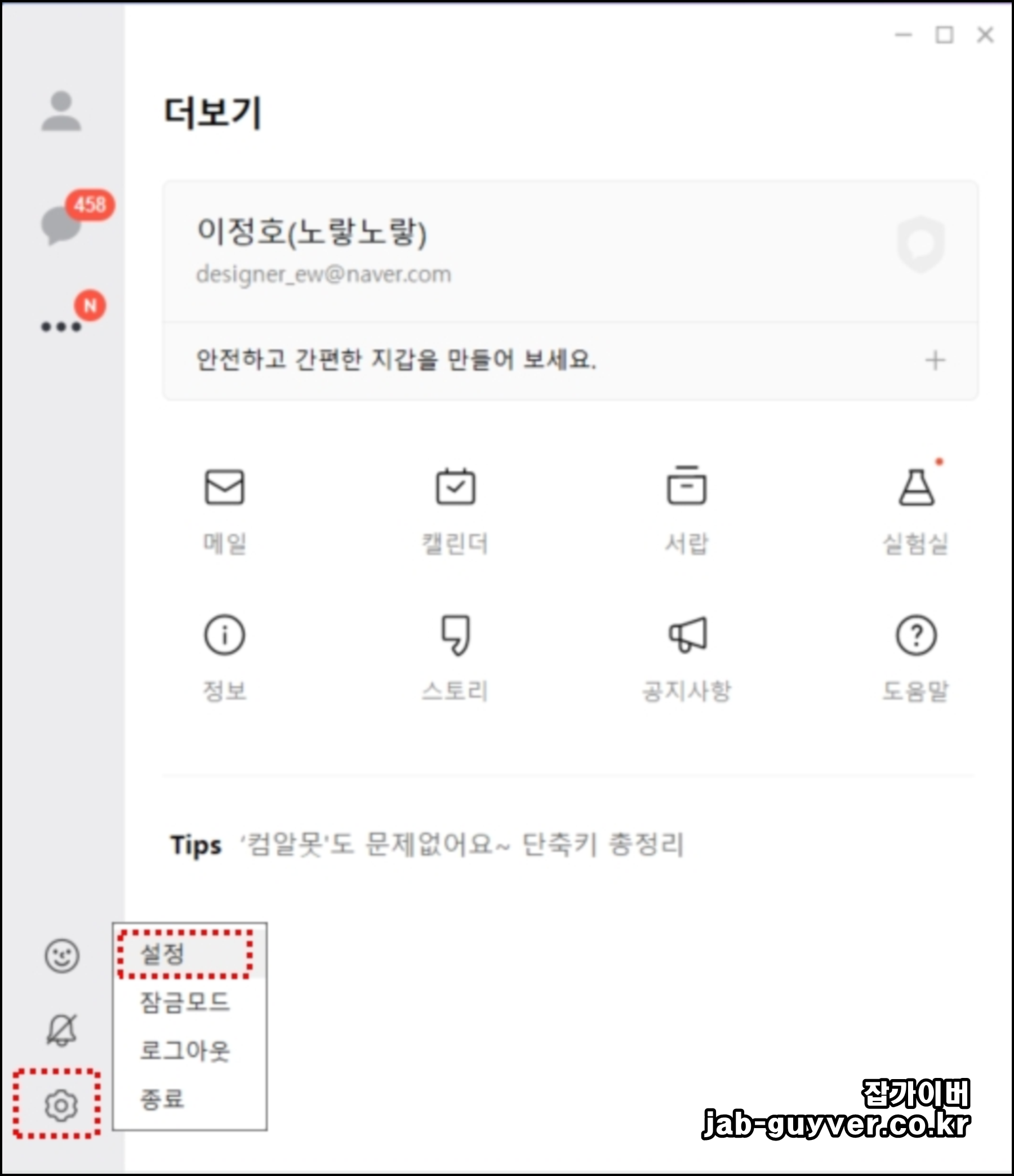 좌측 하단 기어마크를 선택 후 설정으로 들어갑니다.